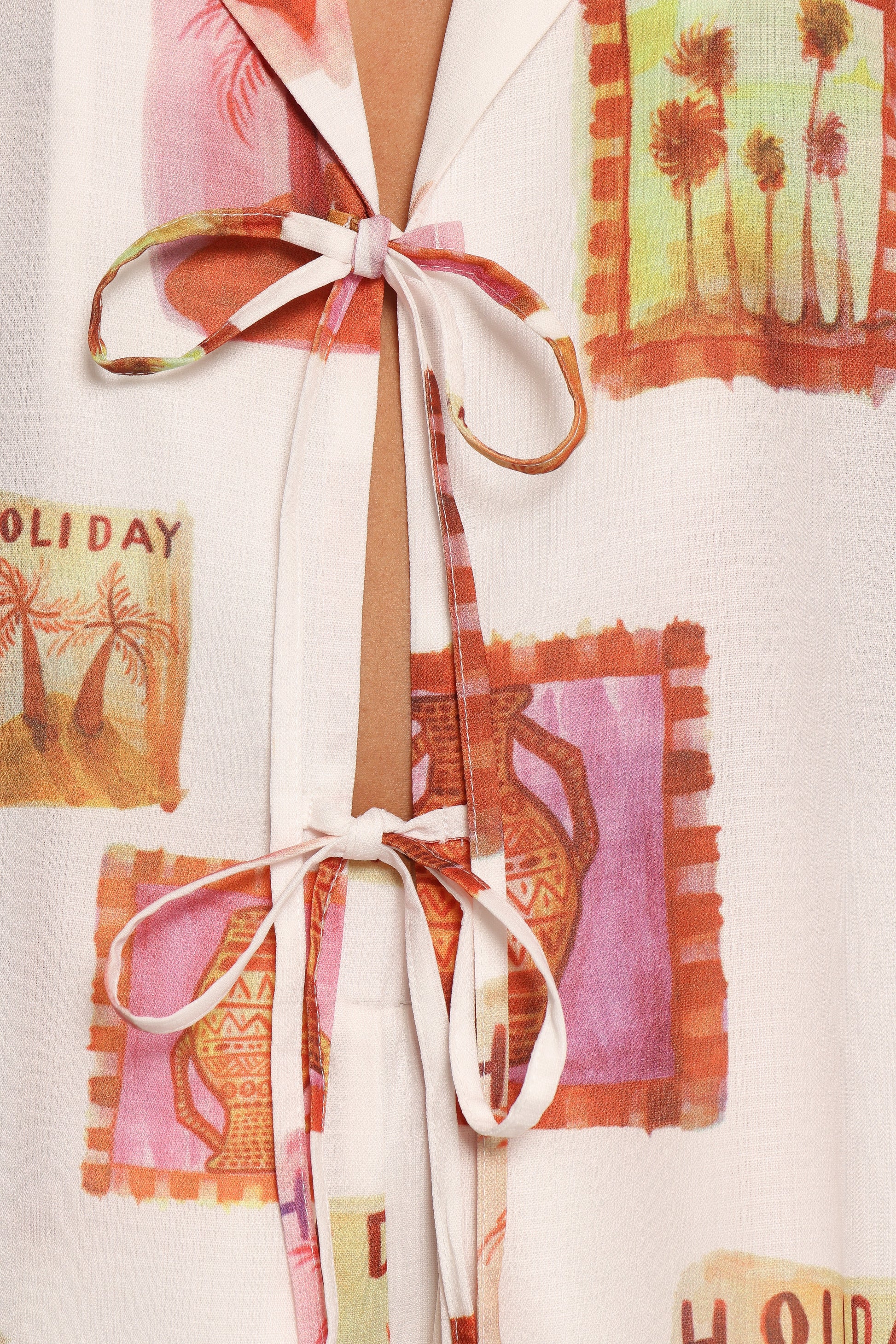 DETAILS Short sleeves make this top ideal for warmer weather, allowing you to stay cool and comfortable while looking fabulous. One of the standout features is the front tie closure.