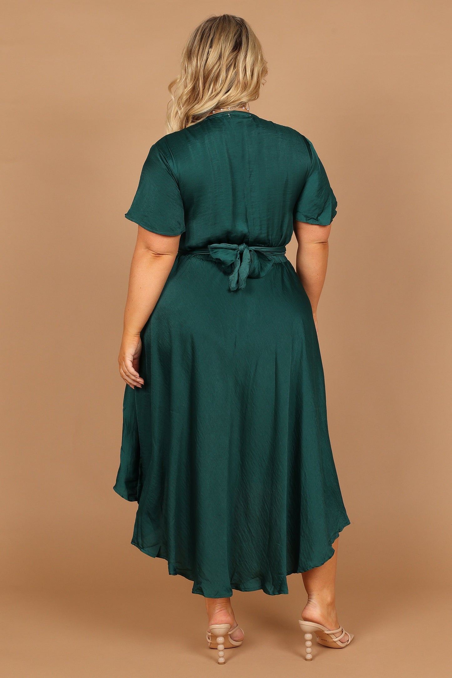 DETAILS Make an entrance in our beautiful Amanda Midi Dress! The stunning v neckline and short, relaxed butterfly sleeves give this dress a sophisticated look. With an attached front tie that can be wrapped around the body or tied at the bust, there are endless ways to make your own statement.