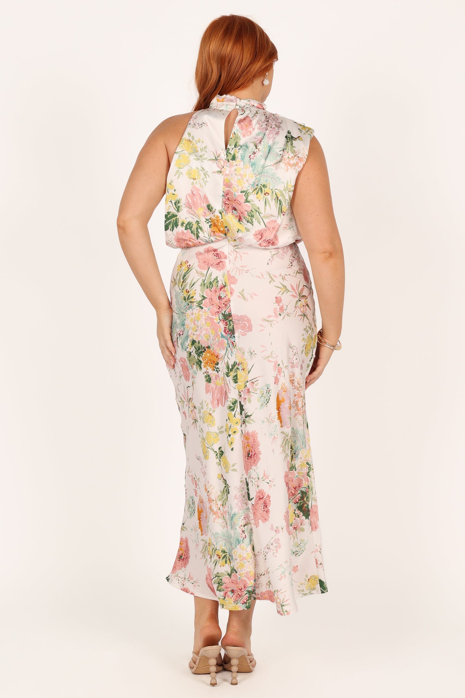 DETAILS Look and feel your best in this stunning event wear dress! Featuring a midi length, an asymmetric high round neckline with gathered pleat detail, plus a back neck opening with button close, it's the perfect party dress for any special occasion. Not only does it look fabulous, but it feels as good as it looks too, crafted from a soft satin feel just for extra comfort.