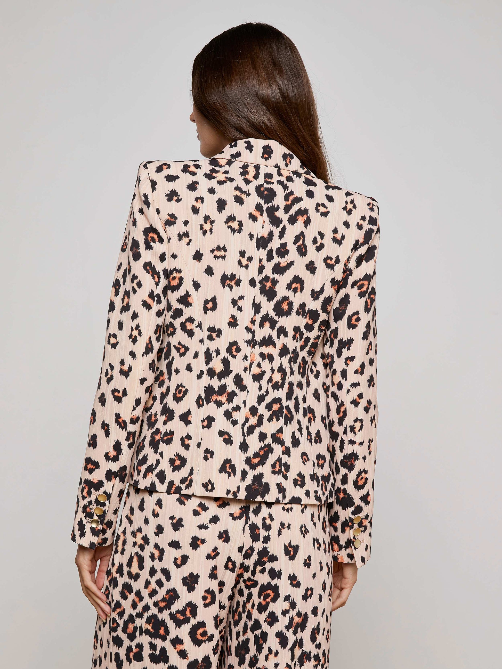 Suiting with personality. Eye-catching and polished, the Atmore double-breasted blazer features a sleek, slim fit and allover leopard print.