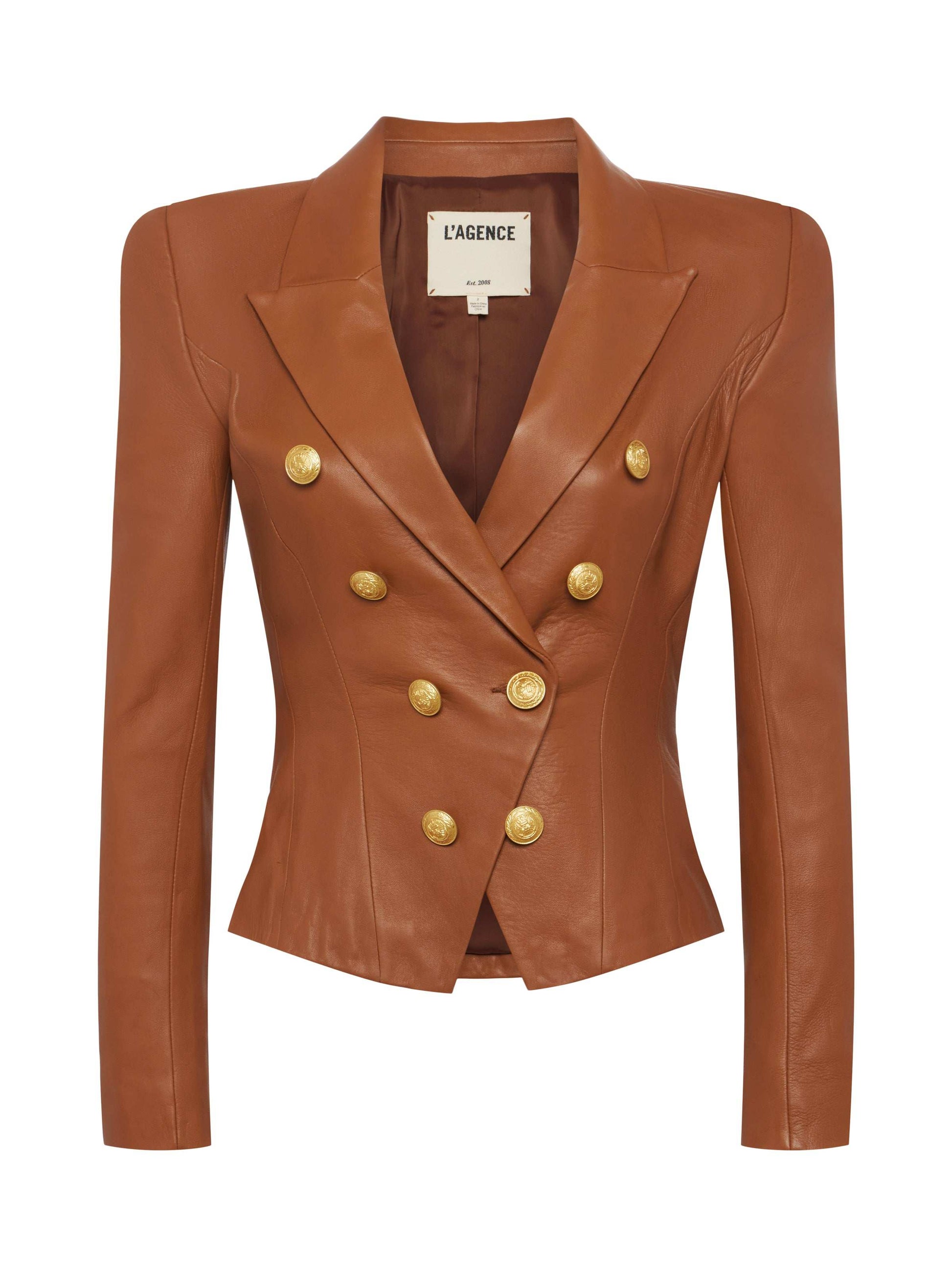 Our most figure-flattering blazer in cognac brown, Bethany offers a super sculpted silhouette with a nipped waist and flared hem.