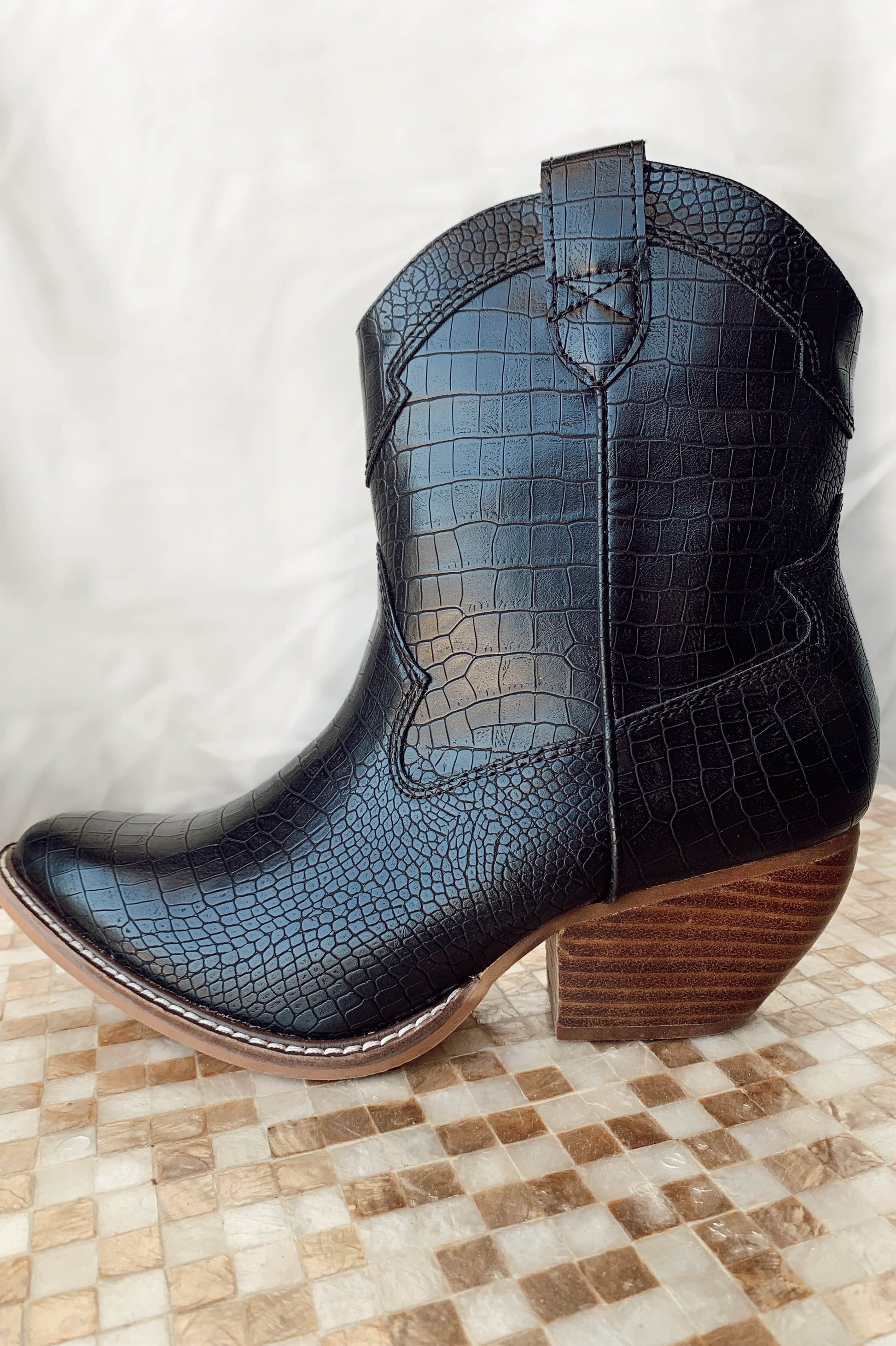 Some things just go better together, and probably always will... Like these boots and your new Tique outfit! These short booties are western inspired and are so trendy, yet timeless. They will complete your favorite outfit and are sure to be a sell out. Now here in black, white, and a fun cow print!