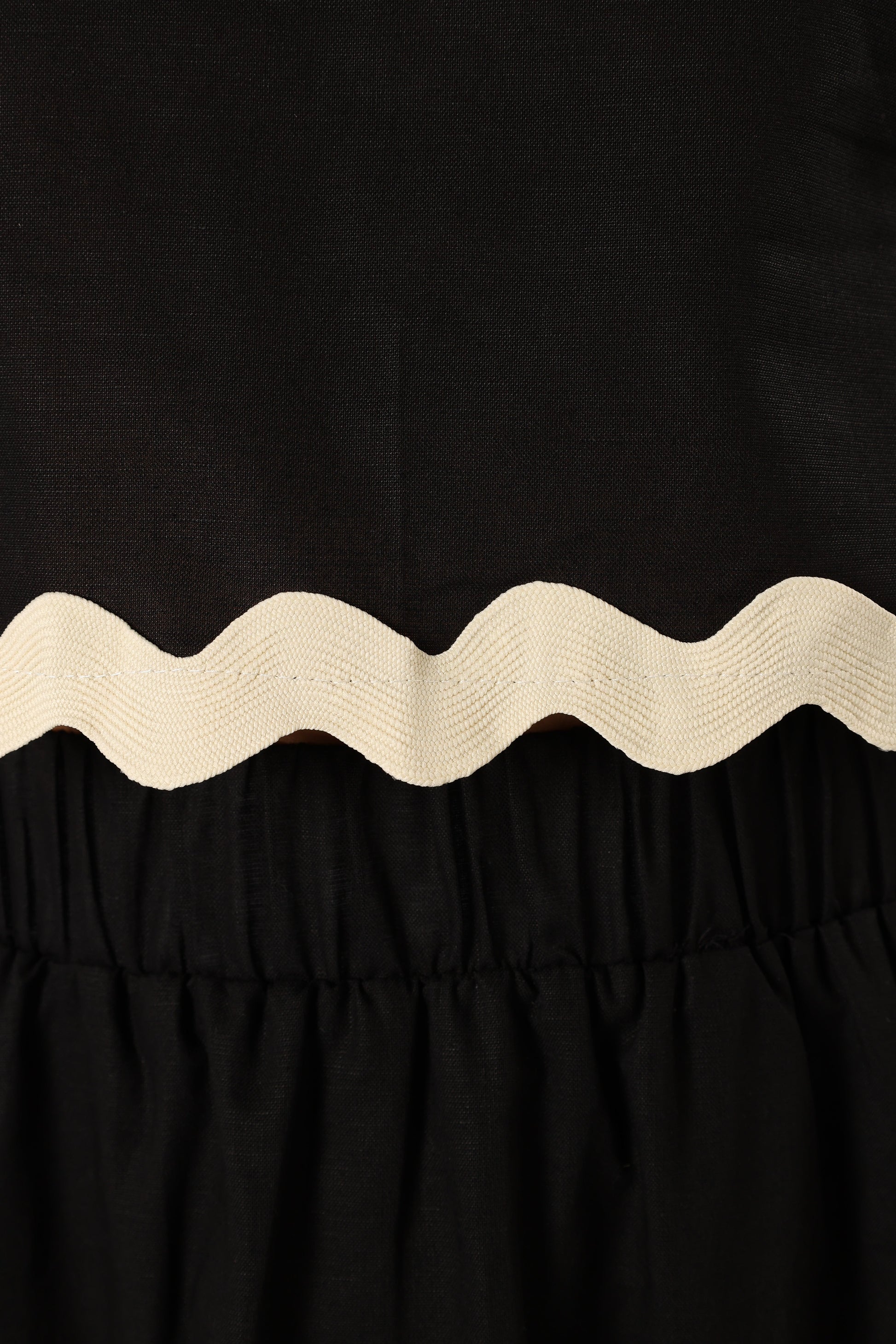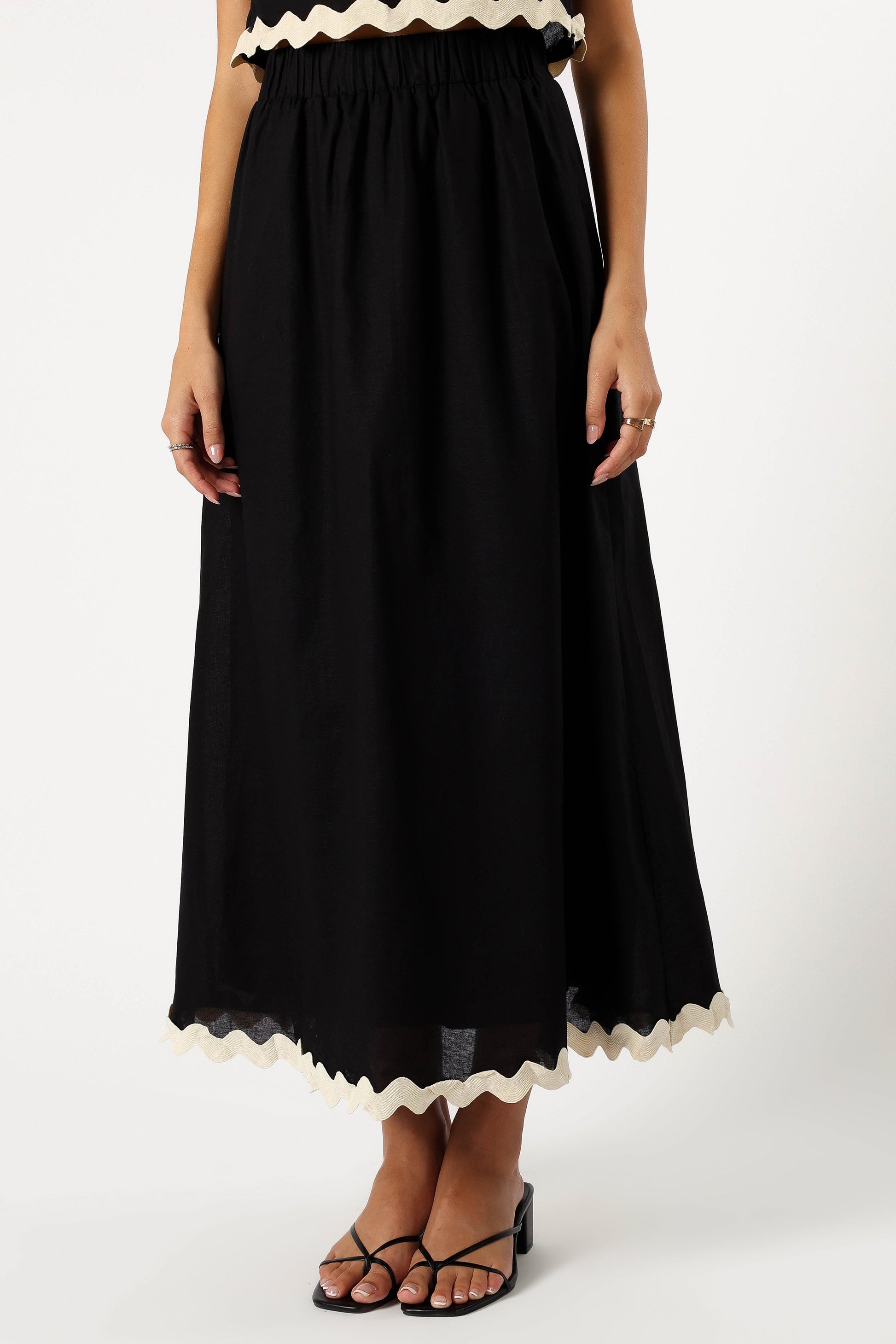 DETAILS Make a statement with our vibrant Chrissy Two Piece Set in Black Cream. This classic combo features a chic cropped top with a demure round neckline and back neck opening. The set's elegant midi length skirt sits high on the waist and gently flares into a classic A-line silhouette, enhanced by an elasticised waistband for your ultimate comfort