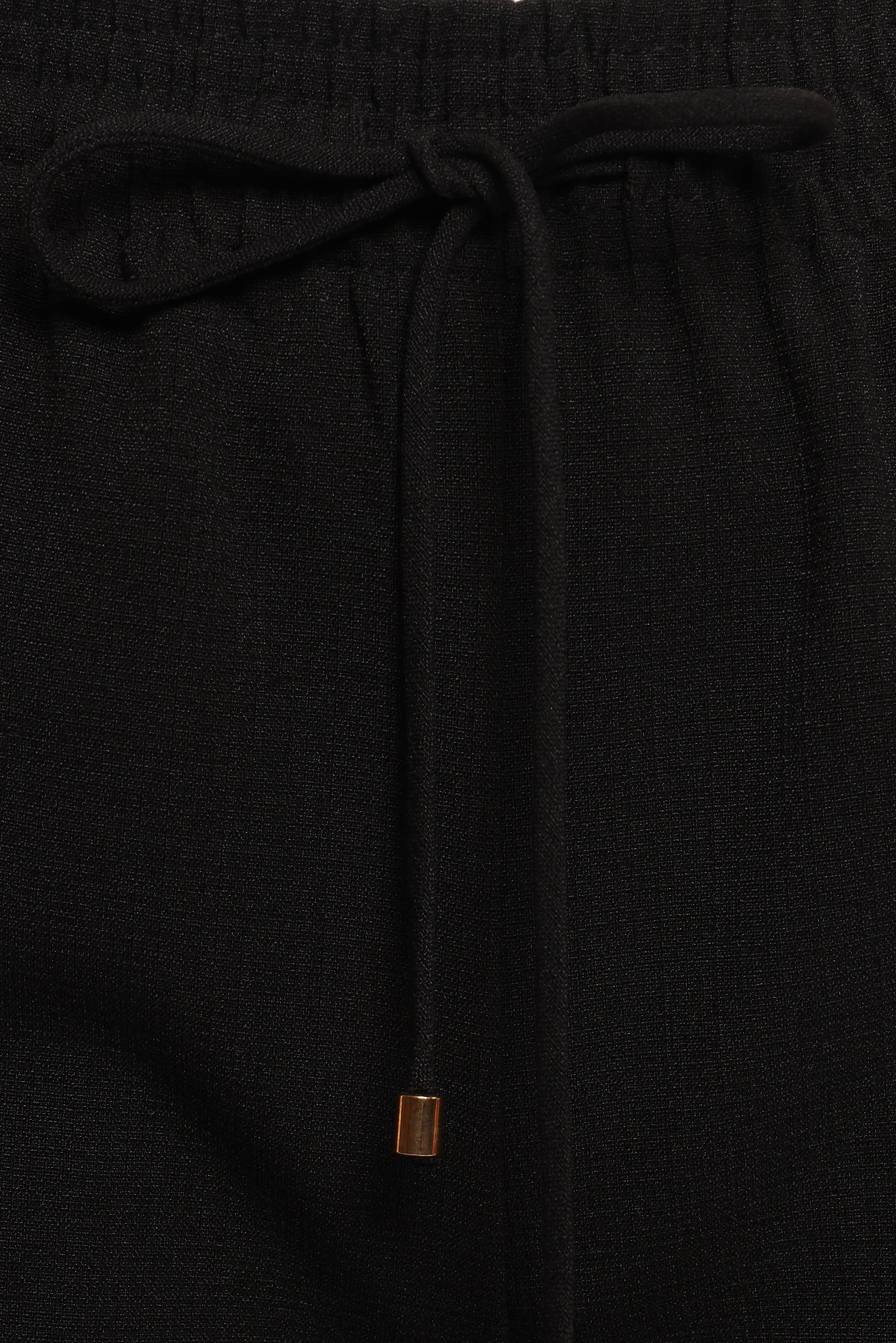 DETAILS Step into effortless sophistication with the Cinch Wide Leg Crepe Pant in Black, a must-have addition to any modern wardrobe. Designed for both comfort and style, these pants feature an elasticised waist and a chic drawstring tie adorned with gold bead details, ensuring a perfect fit every time.