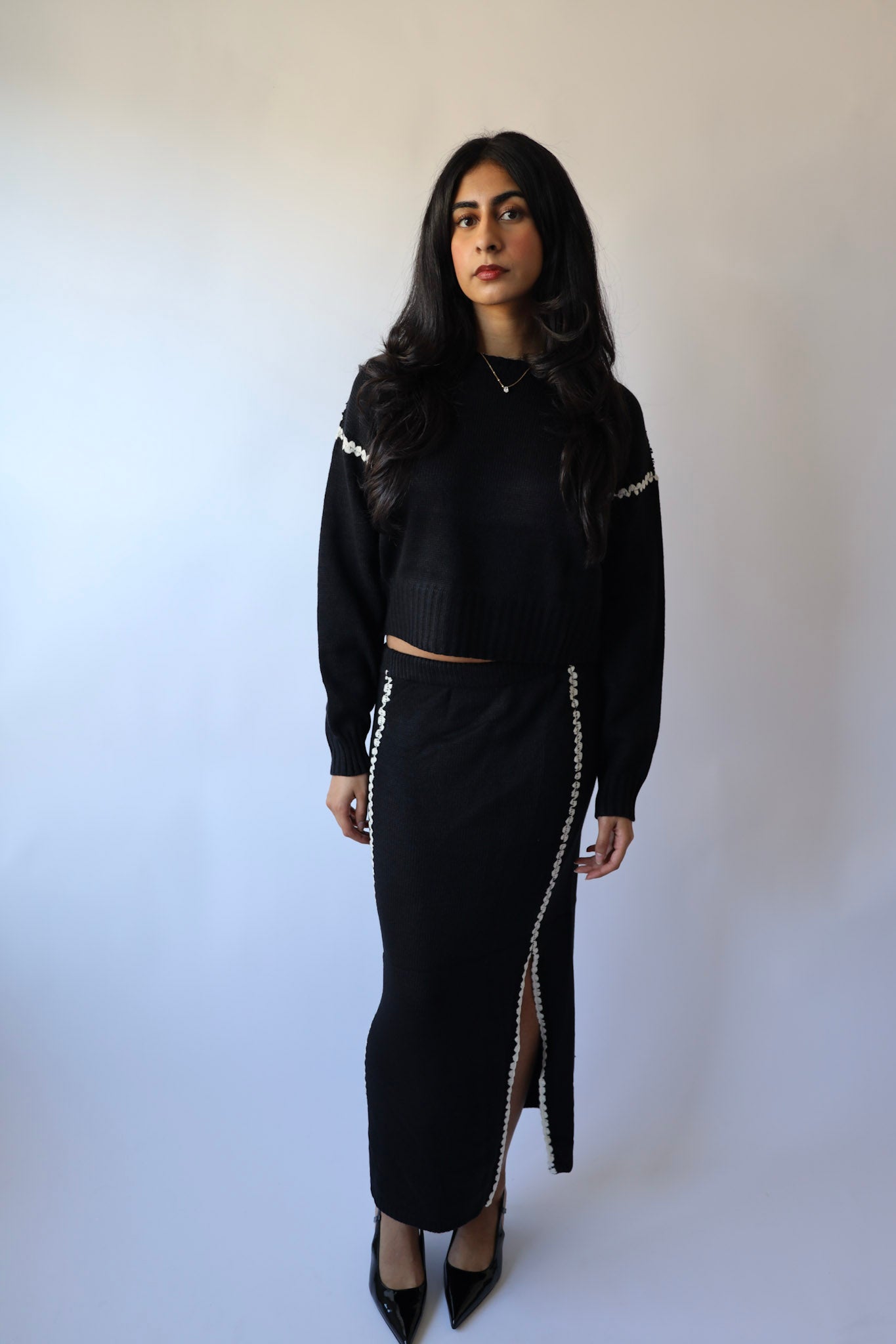 Contrast Stitch Knit Sweater and Long Skirt Set (Sold as a Set)