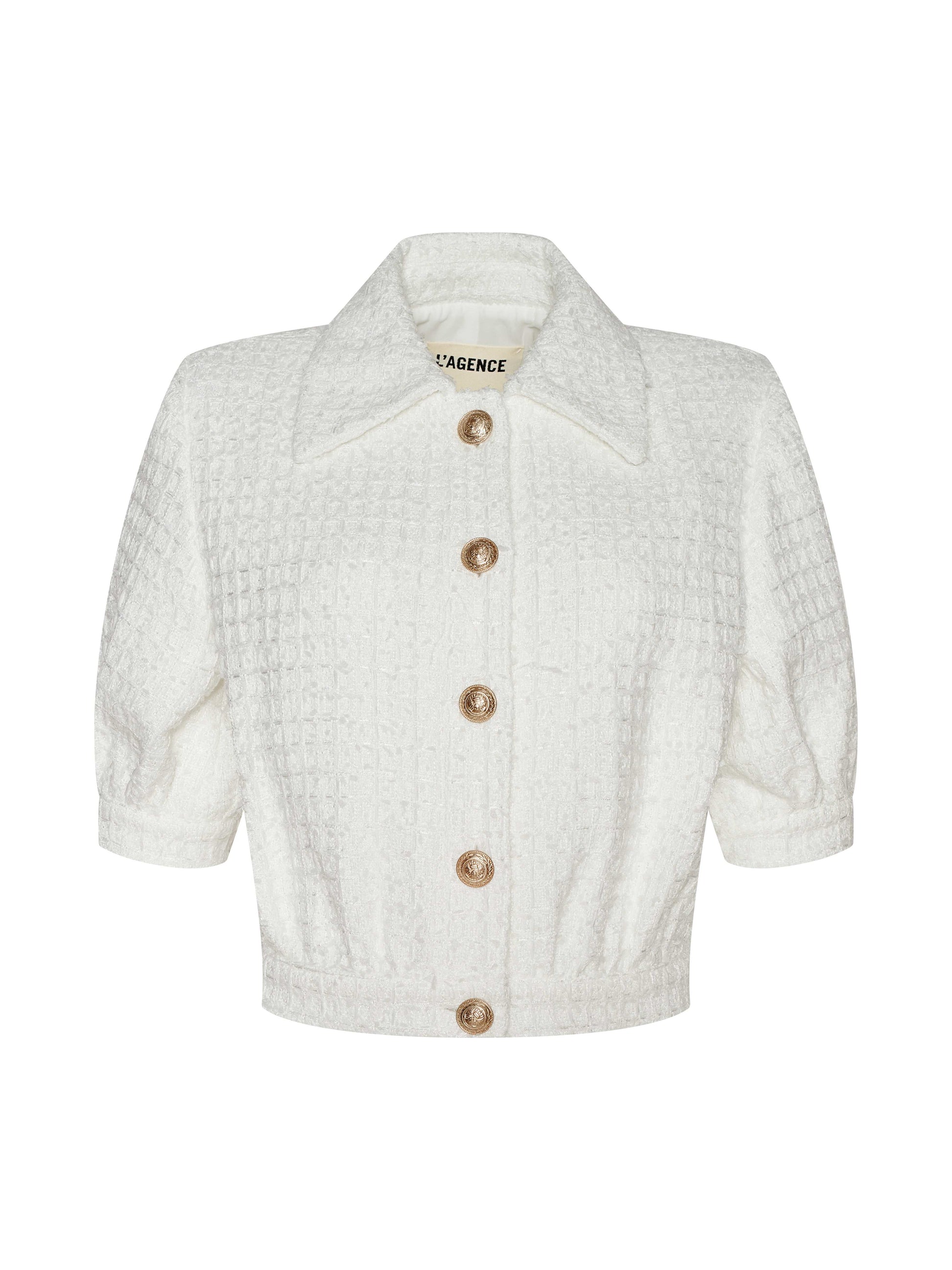 With an ultra-feminine cropped silhouette and puff sleeve, our cropped Cove does double duty as a chic jacket or top. Now in white.
