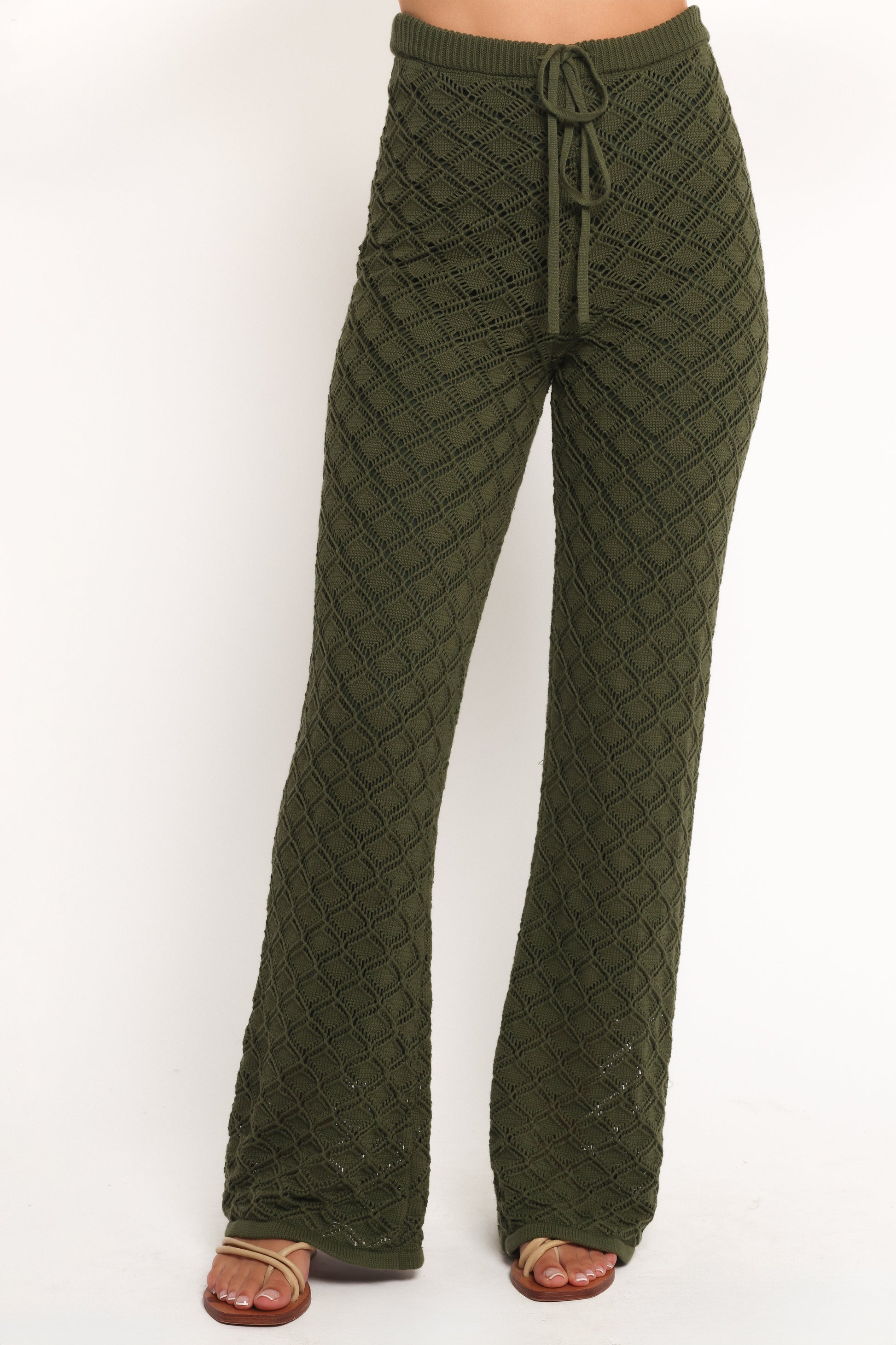 DETAILS The Fefe Textured Knit Pants in Olive effortlessly blend comfort and style, perfect for the fashion-forward individual who values versatility. The wide-leg design not only elongates your silhouette but also adds a touch of modern sophistication to your ensemble.