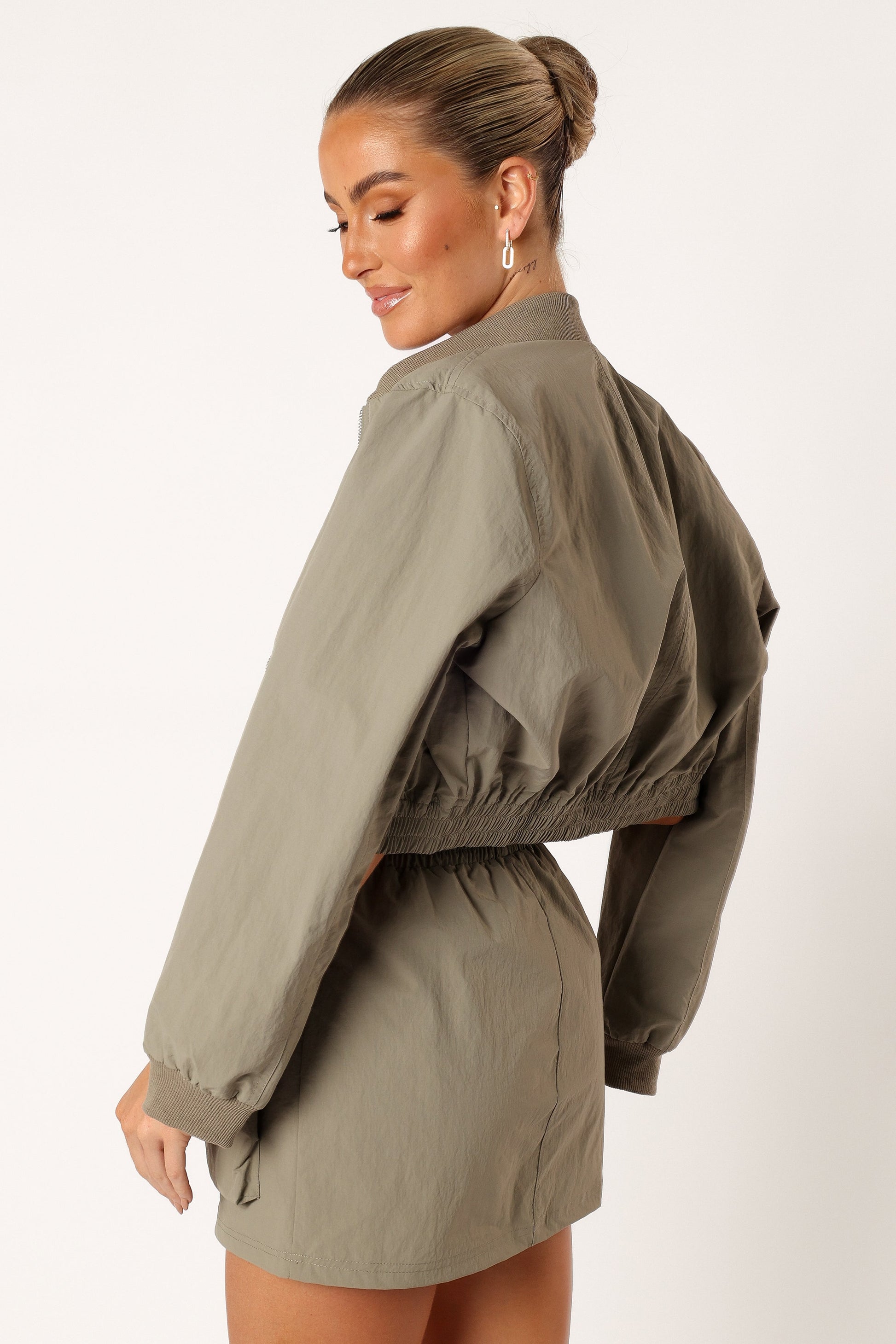DETAILS The Freddie Two Piece Set is the ultimate in casual, yet trendy fashion. This light olive jacket and skirt set is perfect for any occasion, from a day out with friends to a weekend getaway. Featuring a crewneck collar jacket, this two piece set offers both comfort and style. The high waisted skirt is both flattering and comfortable, and the elasticised waist band ensures a perfect fit.