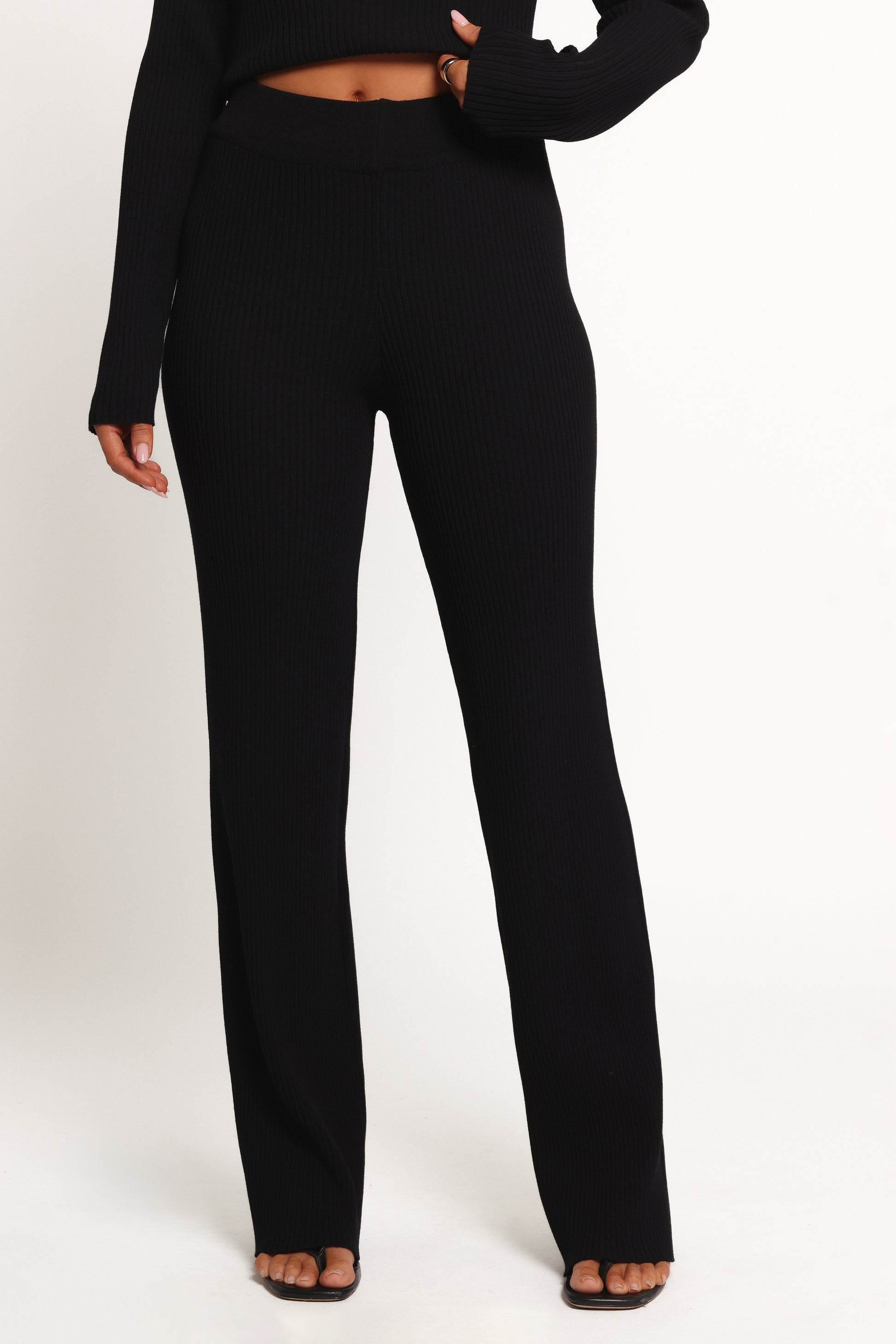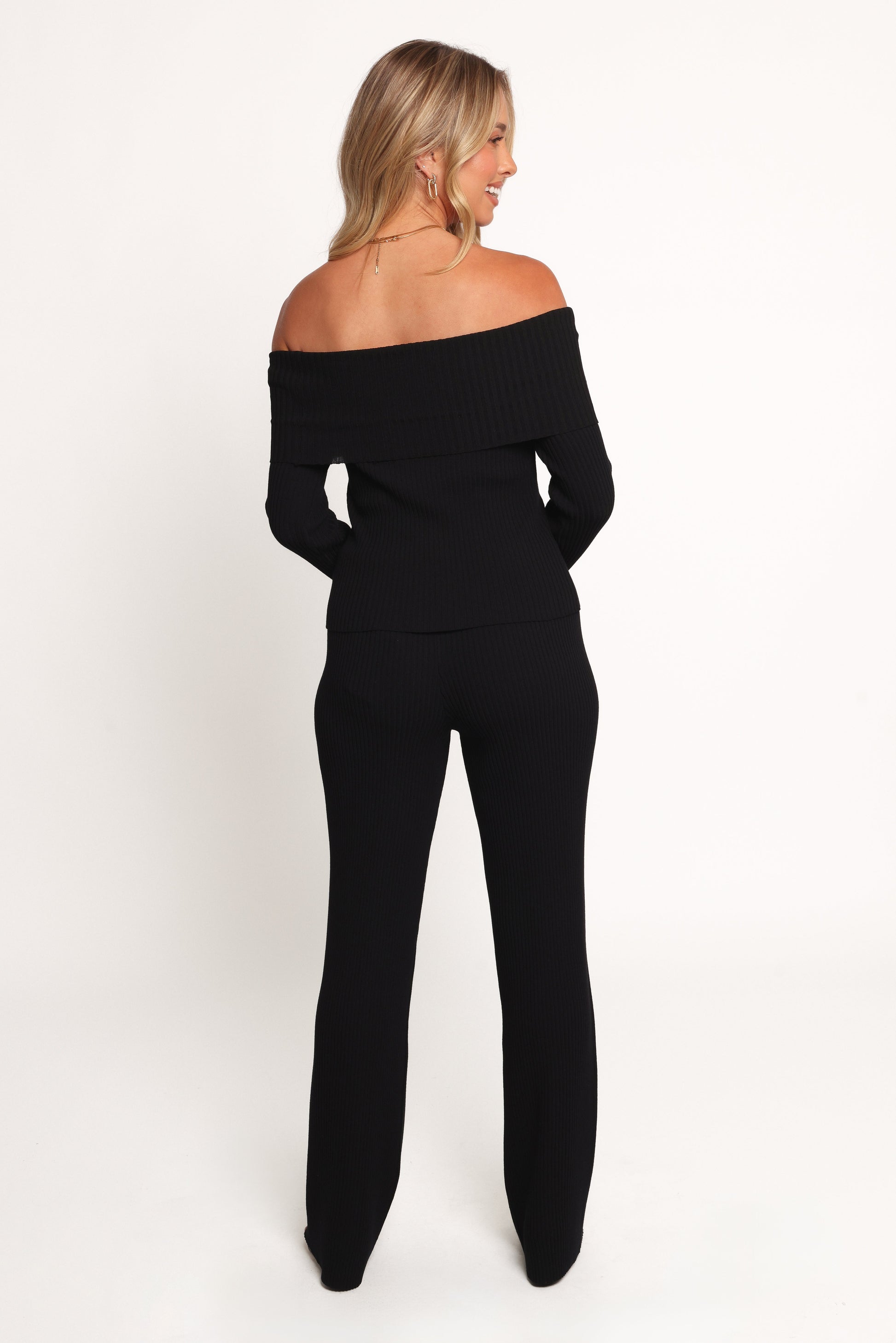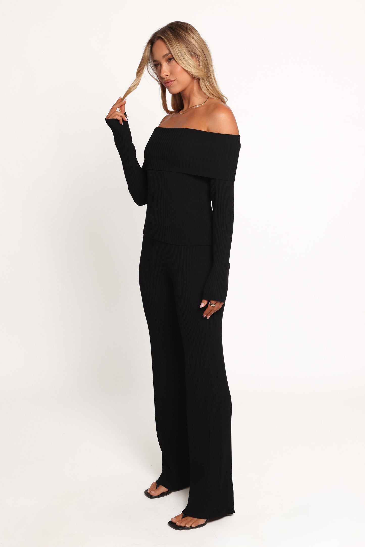Gindie Ribbed Knit Off The Shoulder Pant Set - Black
