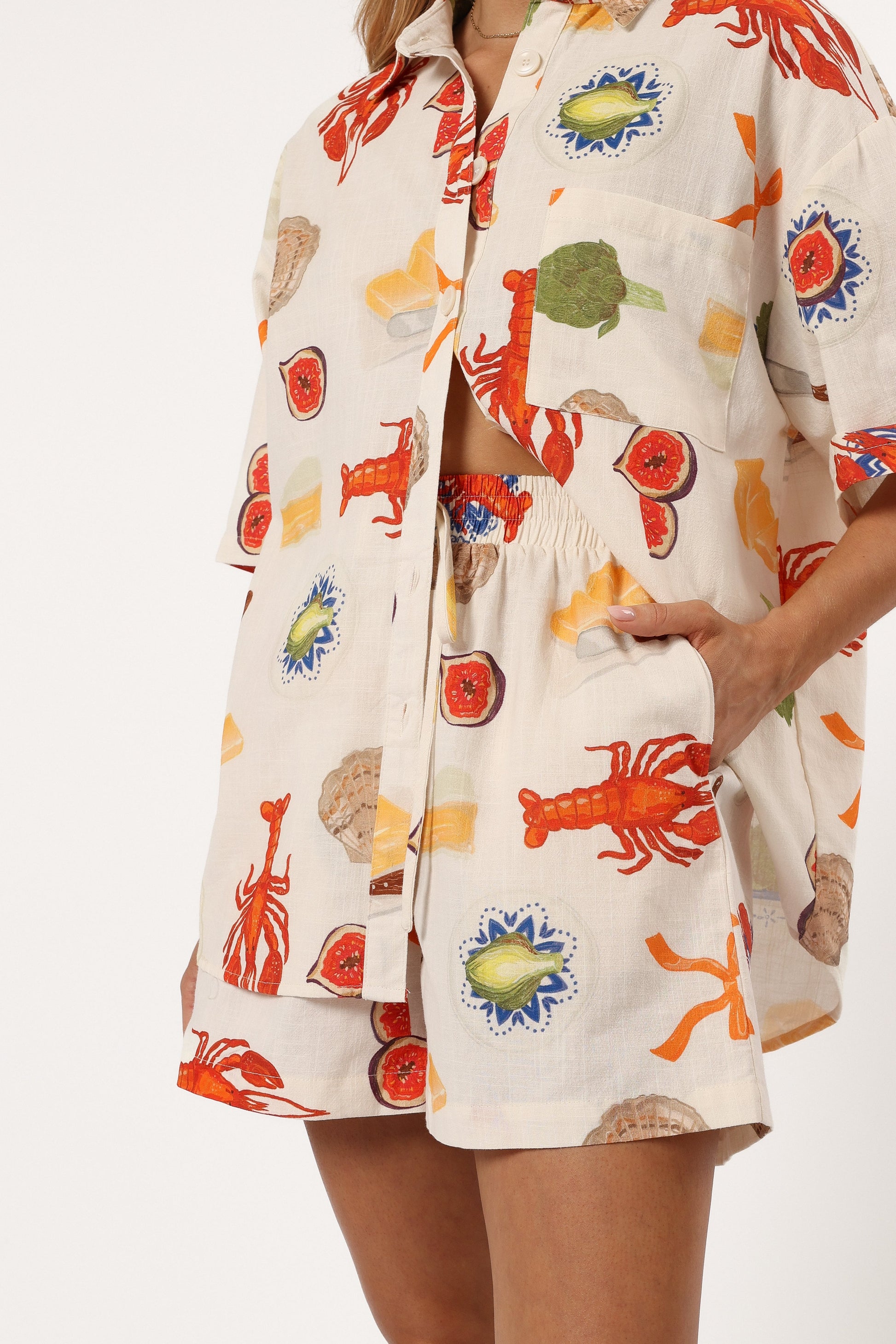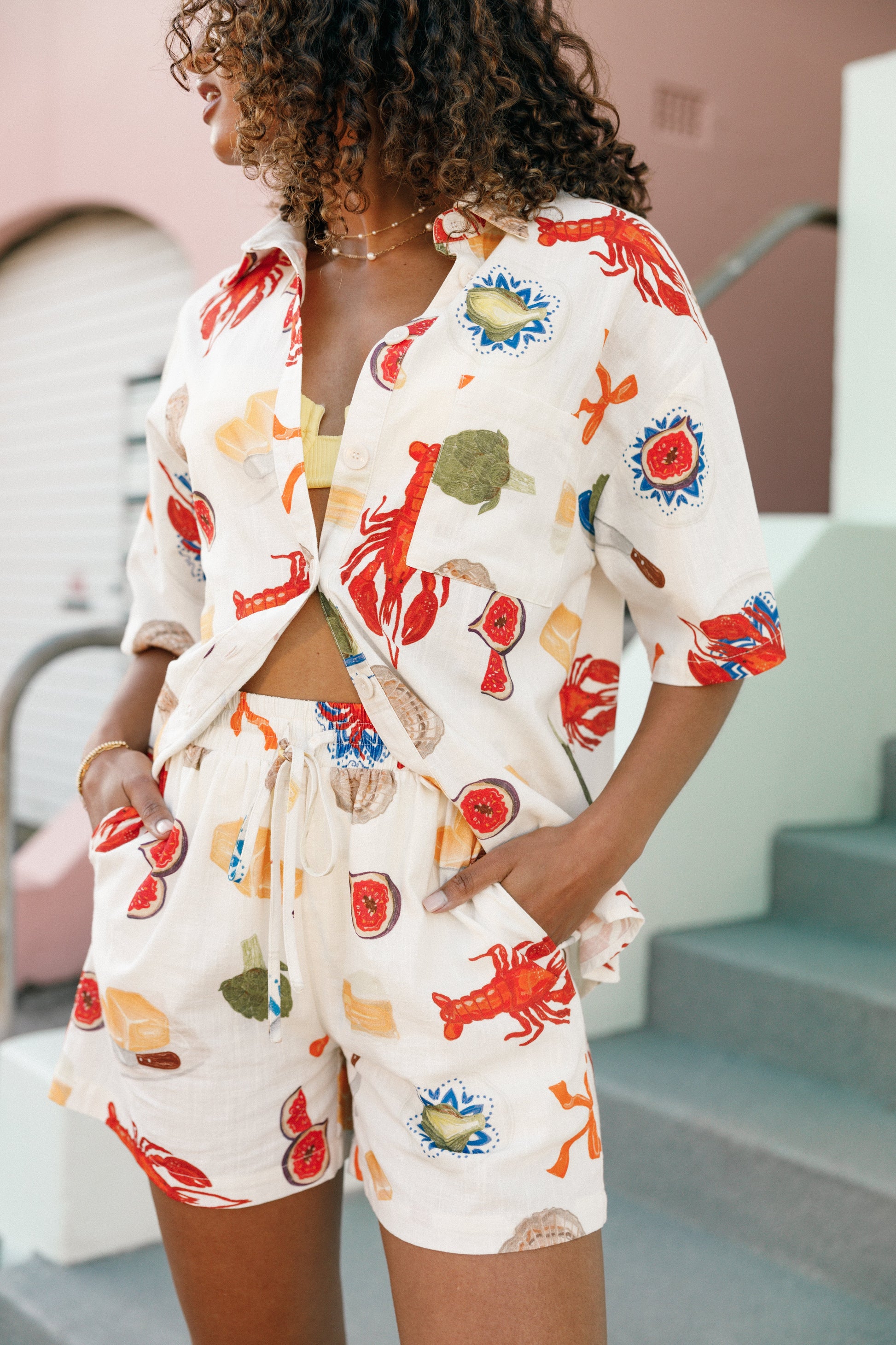 DETAILS Say hello to summer with the Hampton Short! It features a high waist, elastic waistband, and abstract print design for added charm. Made from lightweight and breathable fabric, it's comfortable to wear all day long.