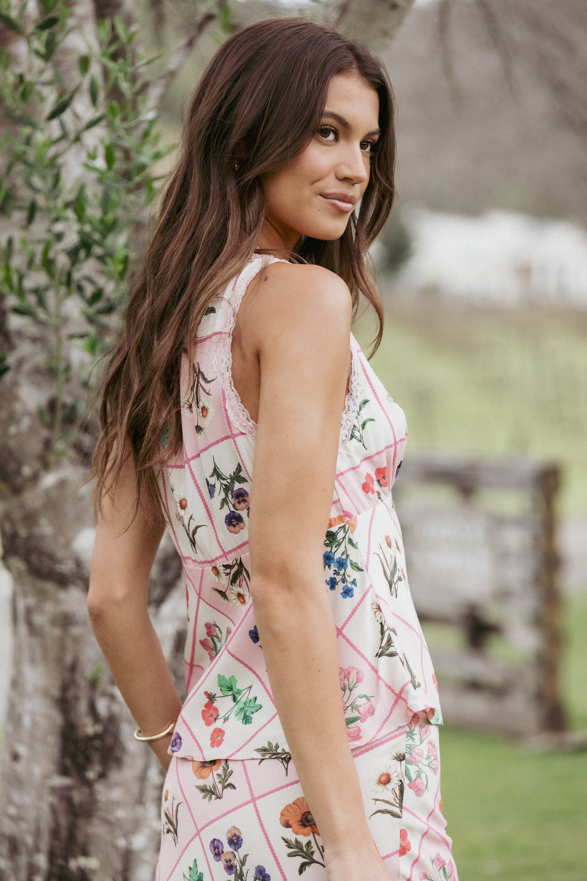DETAILS Introducing the Kelso Top in floral, where vintage charm meets modern elegance. This gorgeous piece features a chic v-neckline complemented by thick shoulder straps, offering a perfect balance between style and support.