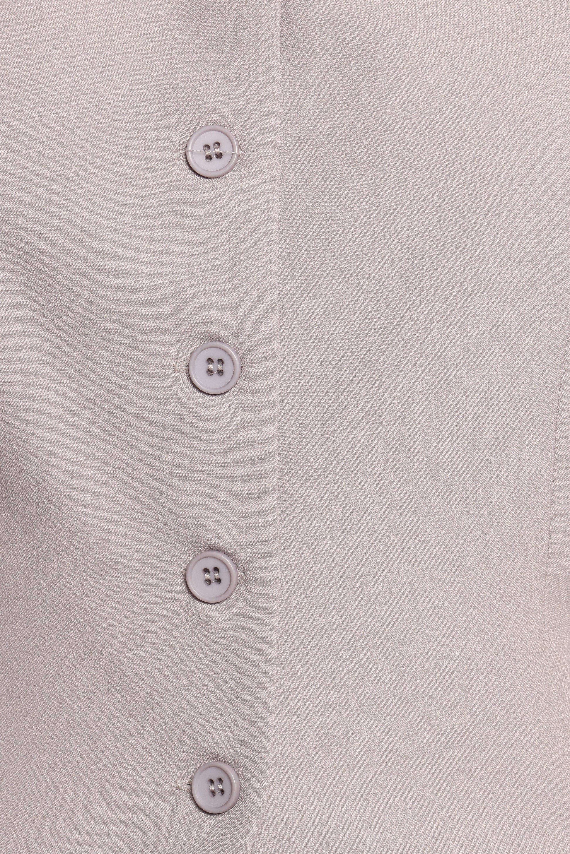 DETAILS Effortless and modern, the Kernie Vest Top in light grey is a closet essential. With its sleek boat neckline and sleeveless cut, it's perfect for layering or wearing solo. The functional button-down closure adds versatility, while the non-functional pockets bring a chic, minimalist touch.