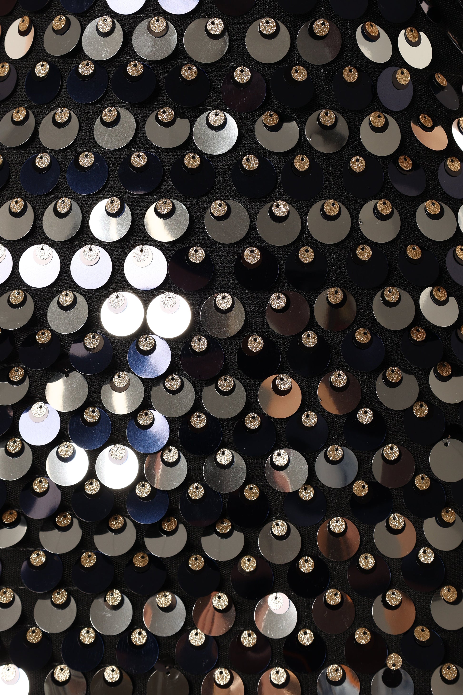 DETAILS This stunning sequin maxi dress is perfect for making an entrance at your next party. Featuring a straight neckline, thin elasticised straps and a side invisible zip, this dress will have you looking sleek and sophisticated as soon as you walk through the door.