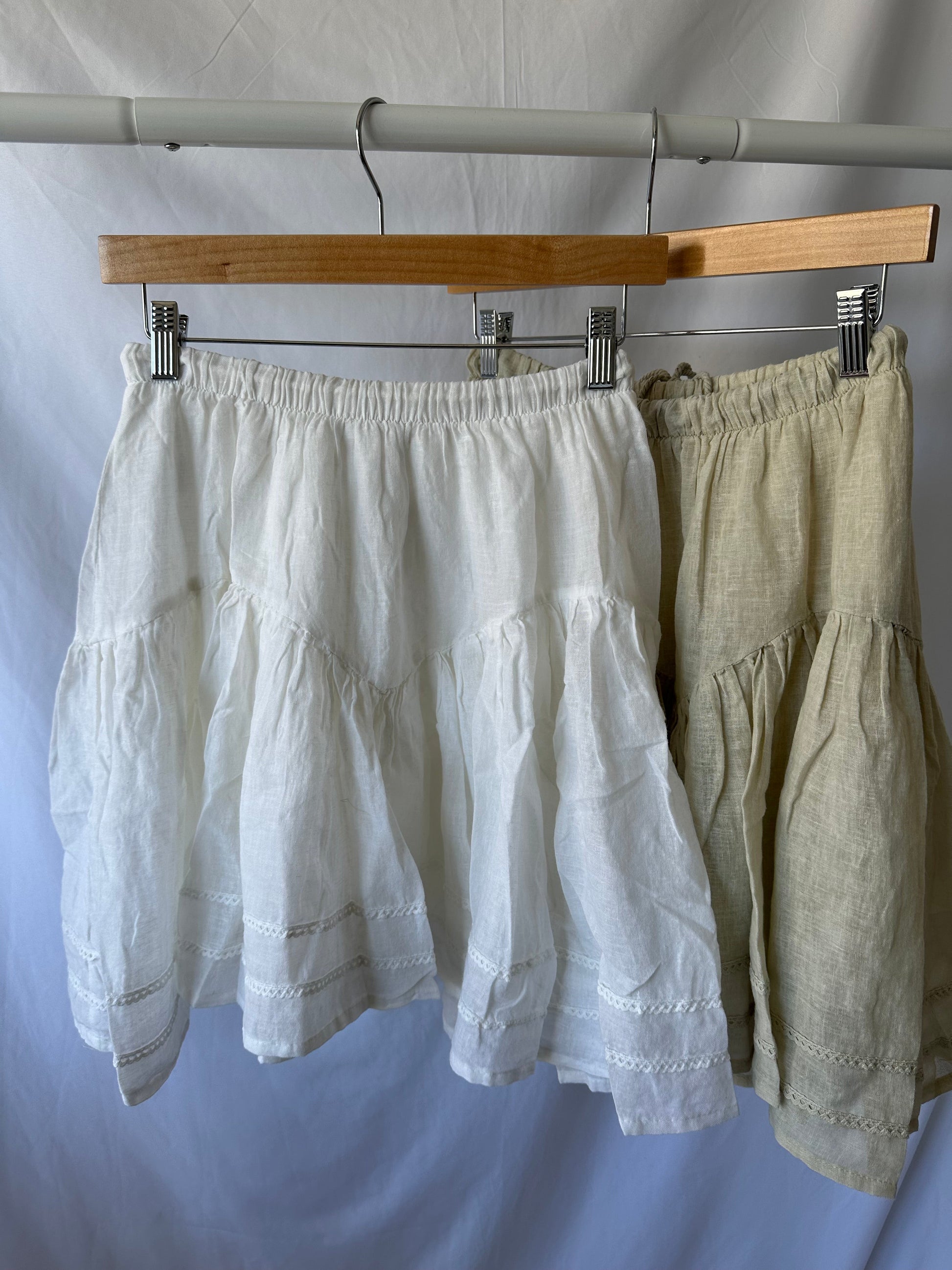 Unleash your sassy side with our Lace Trimmed Mini Skirt! Featuring delicate white lace and a flirty ruffle, this drop waist mini skirt will elevate any outfit. Perfectly paired with a cropped top or a cute baby tee and boots. (Did we just say "baby tee"? How adorable is that?!).