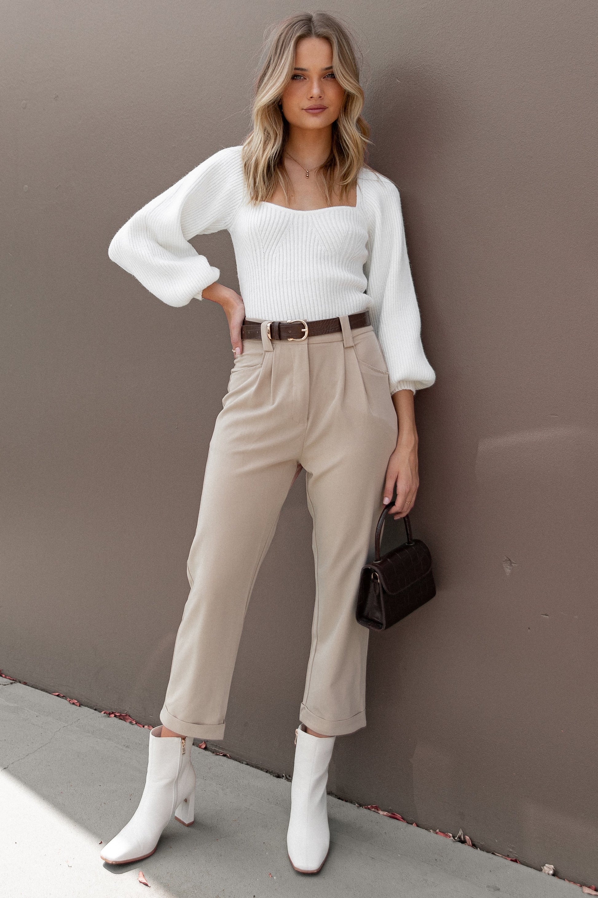 DETAILS These pants are the perfect way to add a classic touch to any look. With their high waist, front pleat detail, belt loops, and functional pockets they offer a versatile style that you can wear anywhere. The straight tapered fit with rolled hemline gives them a fun and effortless vibe.