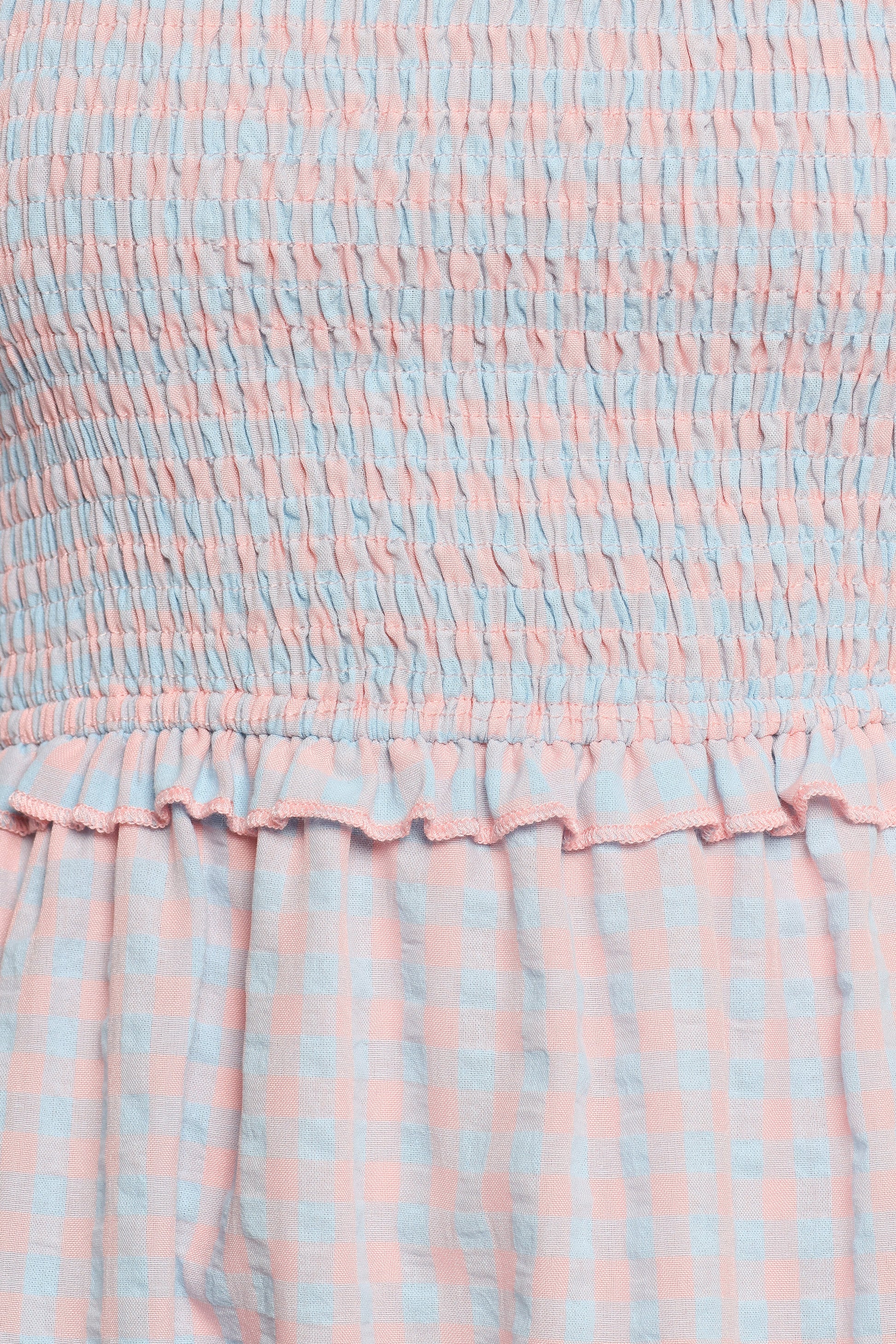DETAILS Step into effortless charm with the Lille Midi Dress in Blue Gingham. This wardrobe staple offers the perfect blend of comfort and style, featuring a midi-length silhouette and an A-line skirt design that flatters every figure.