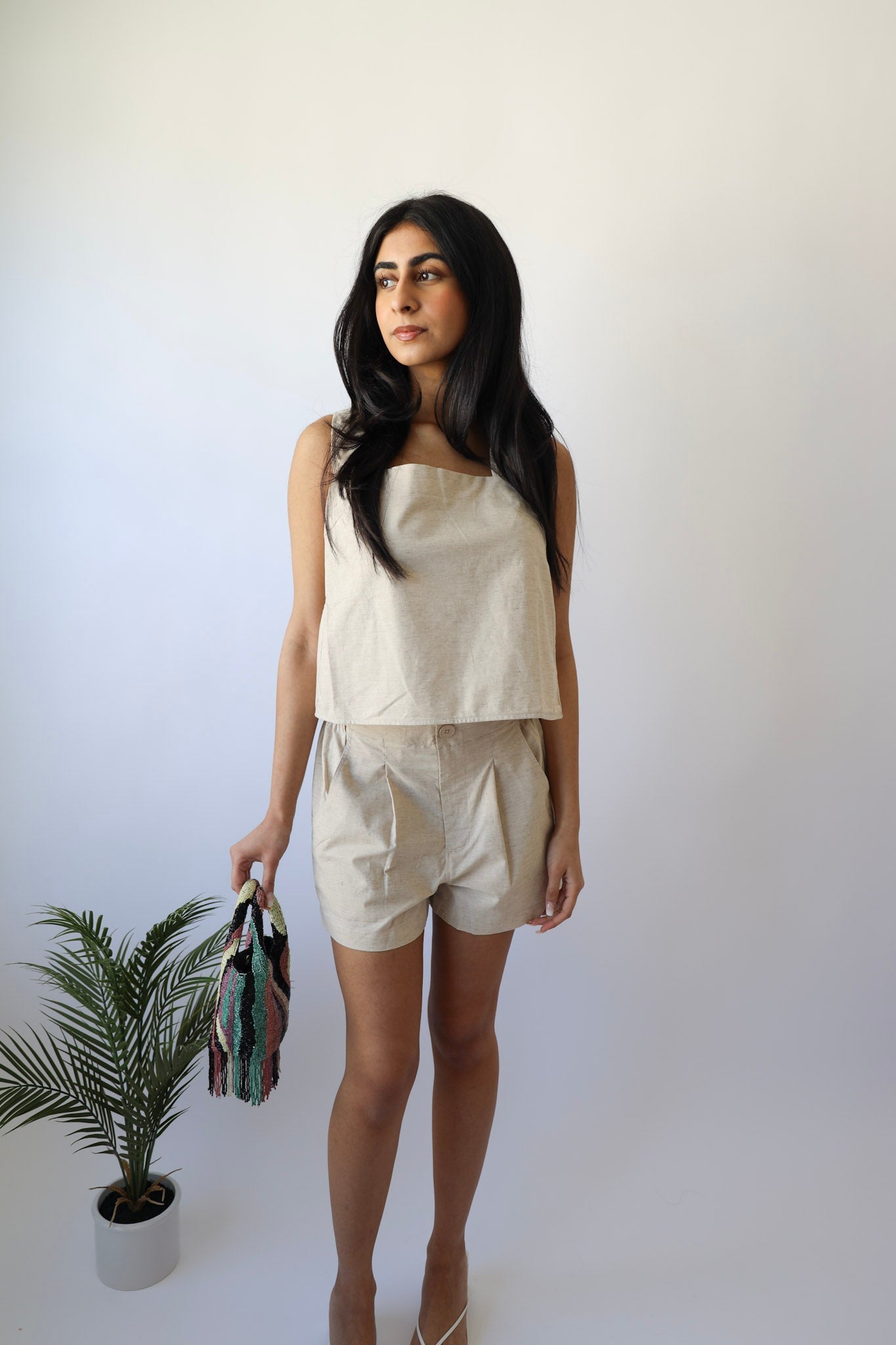 Get ready for a playful summer with our Cream Linen Elastic Waist Band Shorts! Perfect for a vacation or resort getaway. For a complete look, pair with the matching top (sold separately).
