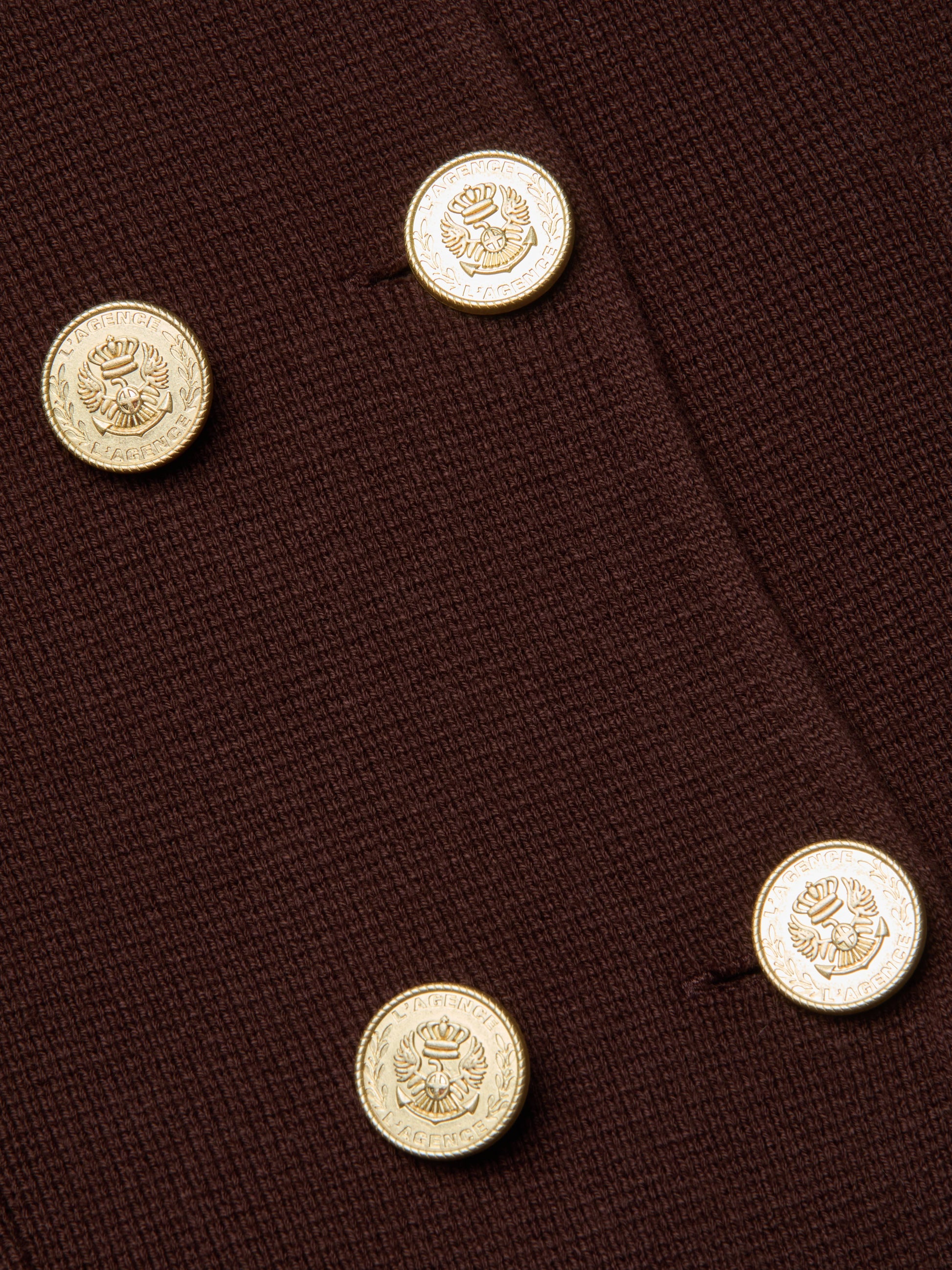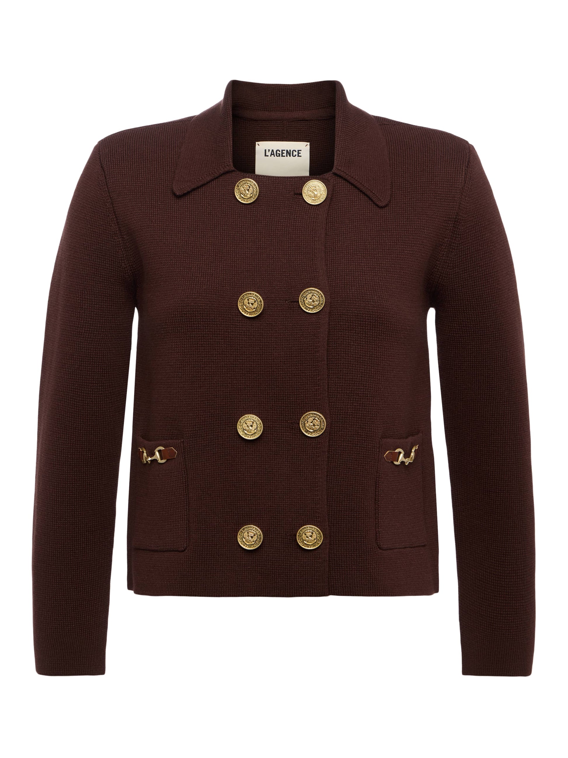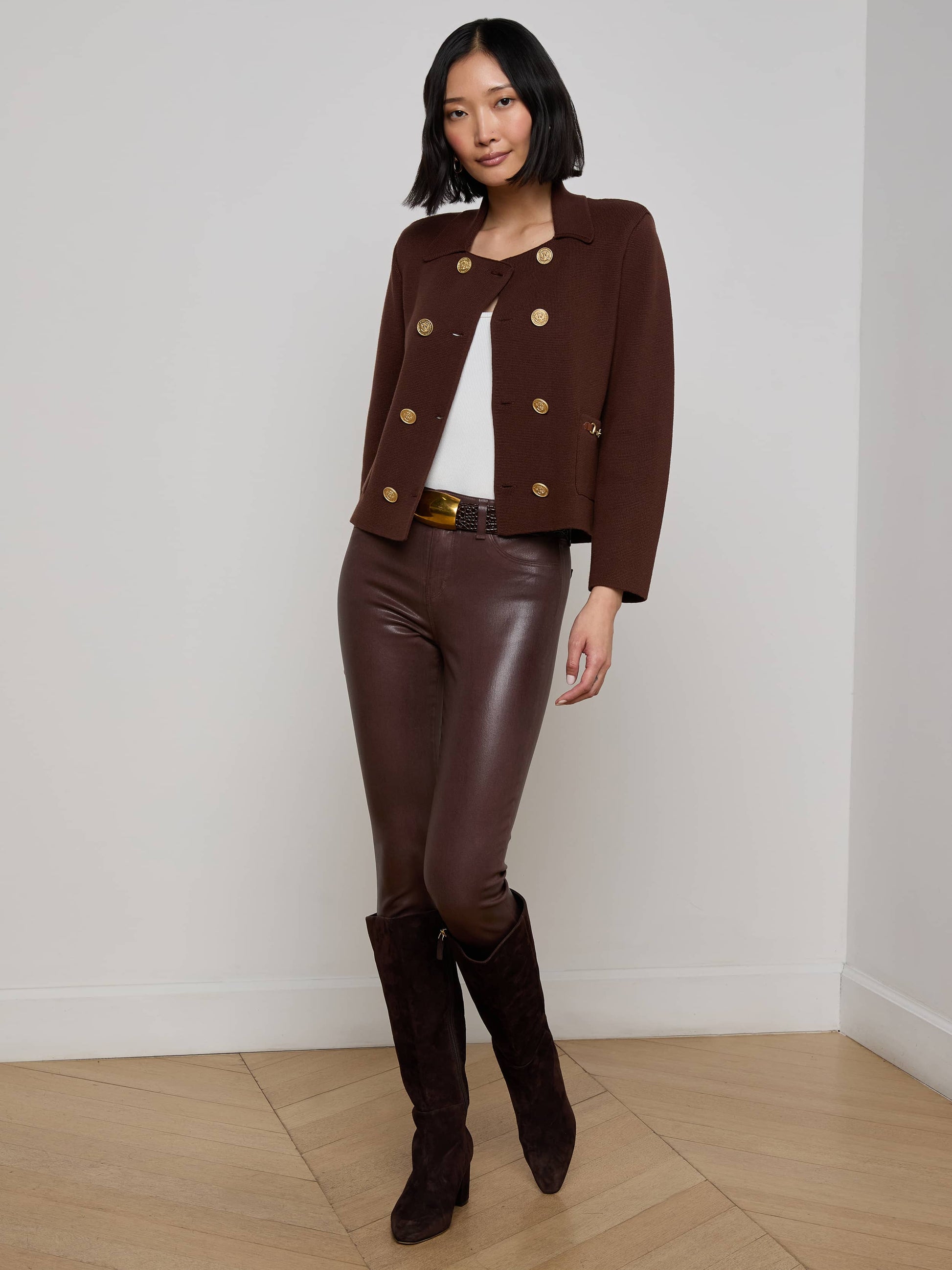 Cut from a cotton-blend textured knit, the Madilyn features strong shoulders, a tailored collar, and a precise crop that sharpens the silhouette. Polished gold buttons add contrast, while hardware accents at the pockets offer unexpected edge. Sophisticated and versatile, it’s the kind of piece you'll reach for again and again.