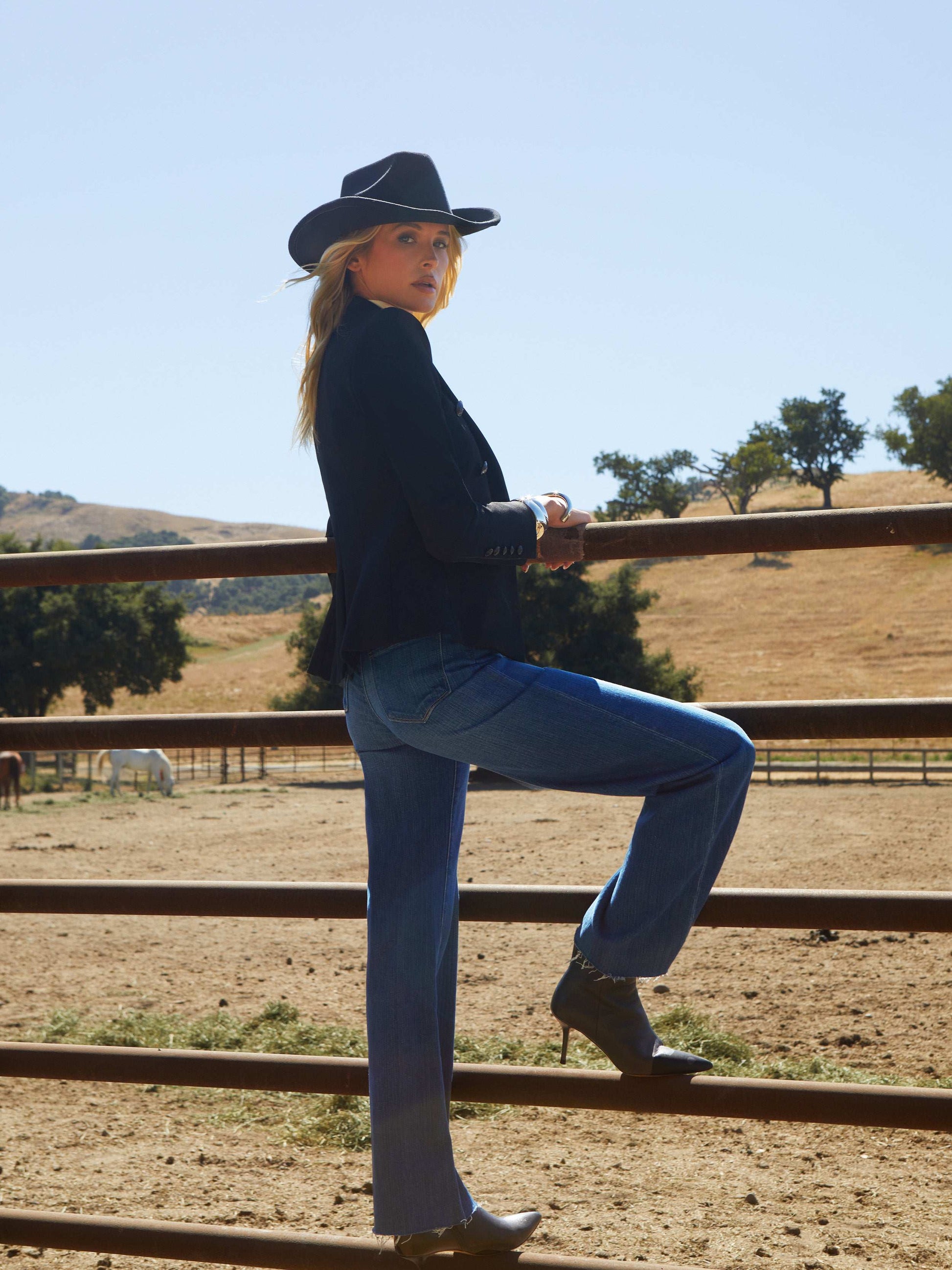 An ultra-flattering double-breasted blazer featuring a defined, cinched waist.