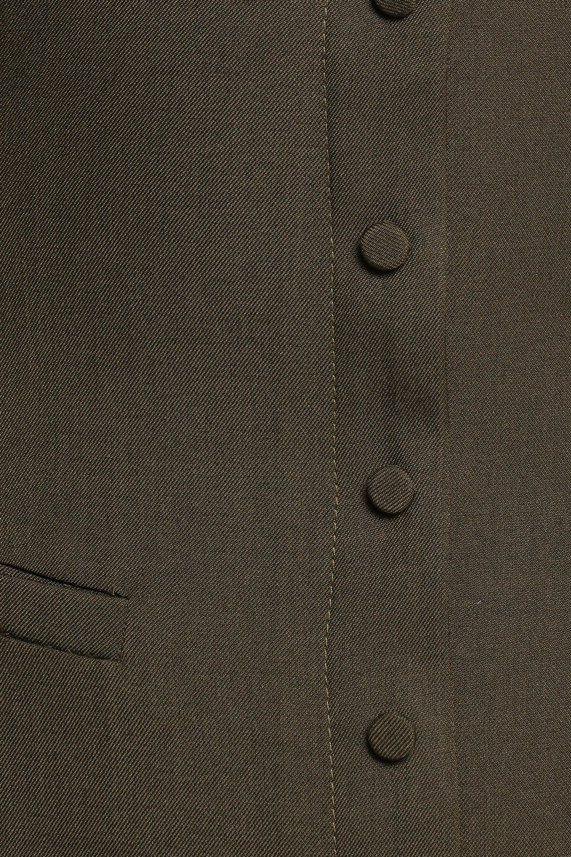 DETAILS Step out with confidence in the Matilde Midi Dress in Olive, where timeless elegance meets contemporary flair. This exquisite midi-length dress features a high round neckline and a sleeveless design, offering a blend of comfort and refinement. The front is detailed with non-functional buttons, adding a chic twist that complements its overall aesthetic.