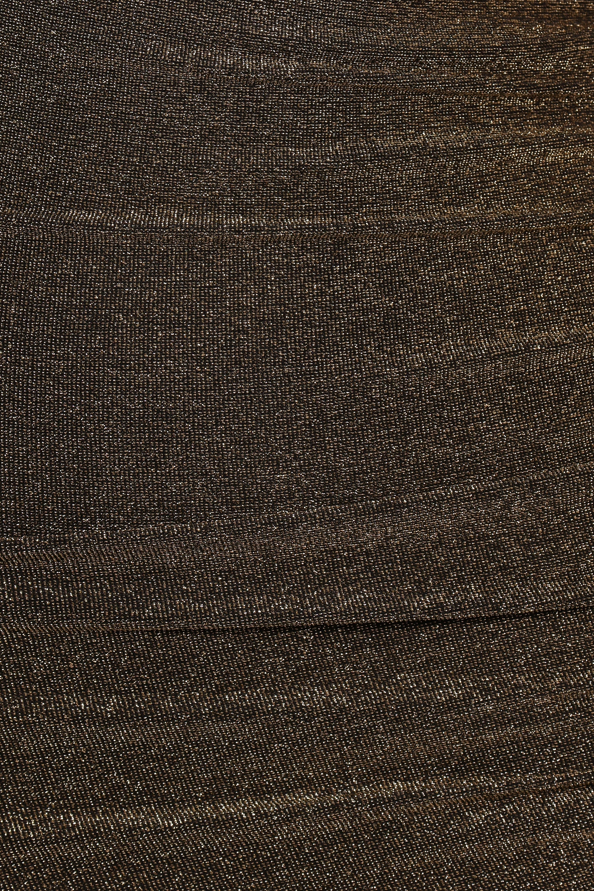 DETAILS This stunning piece features a sleek midi length that skims the figure, while the high round neckline and cowl neck detail add a touch of elegance to your ensemble. Highlighting your silhouette with its bodycon style, the dress boasts gathered side detailing and a daring side split that promises to turn heads.