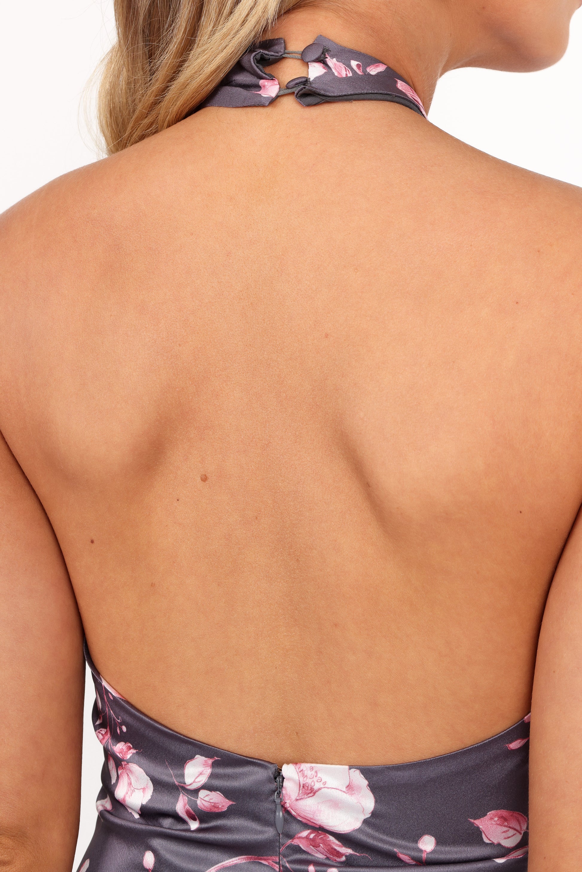 Mila Halterneck Maxi Dress - Steel Gray Floral
