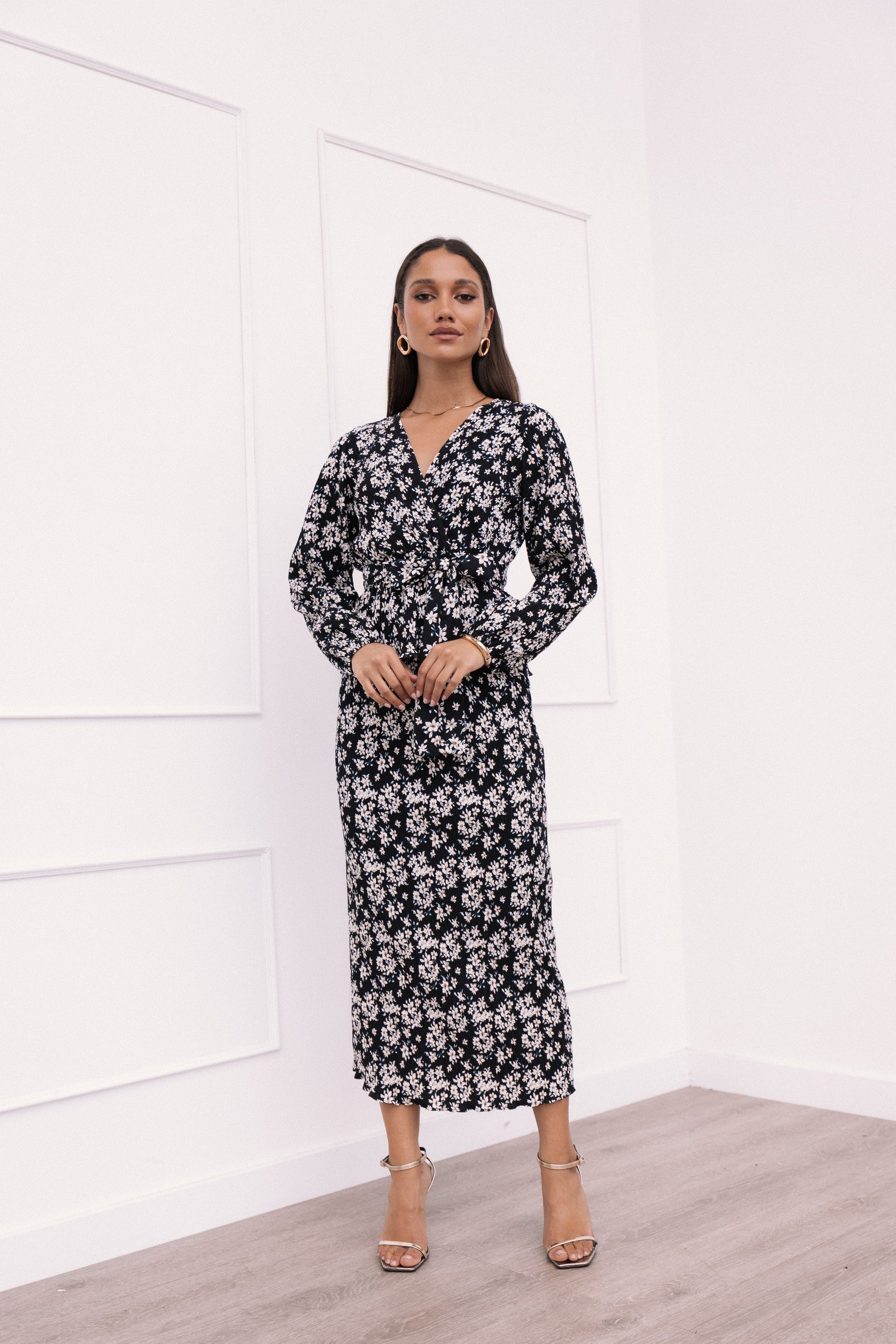 Minelli Pleat Midi Skirt - Black/White Floral