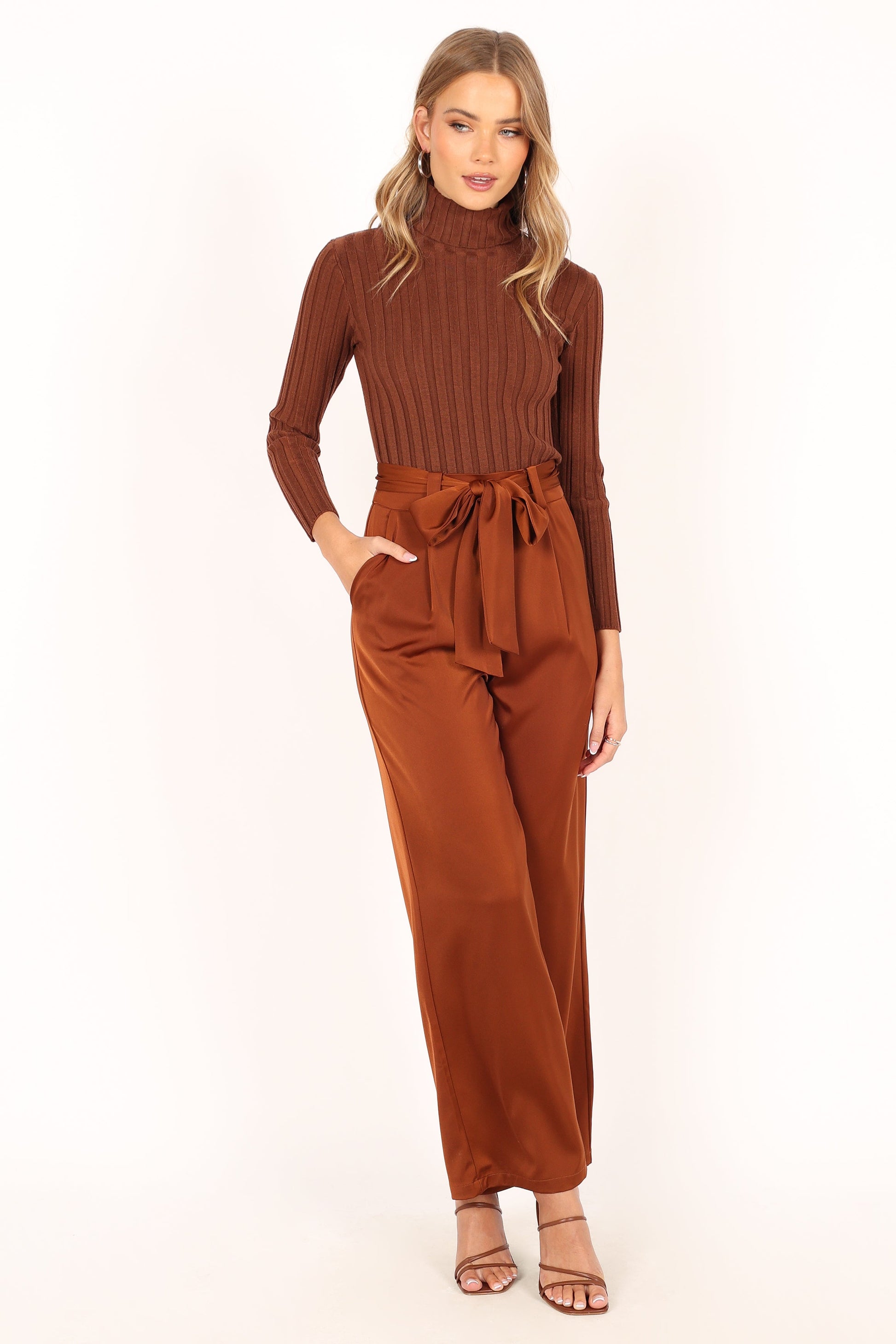 DETAILS Introducing our fabulous brown High Waisted Wide Leg Pants! Our trousers are perfect for any occasion; from a casual day out to that special event. The flattering shape hugs your waist with belt loops and a detachable waist tie, while the wide leg style ensures ultimate comfort.