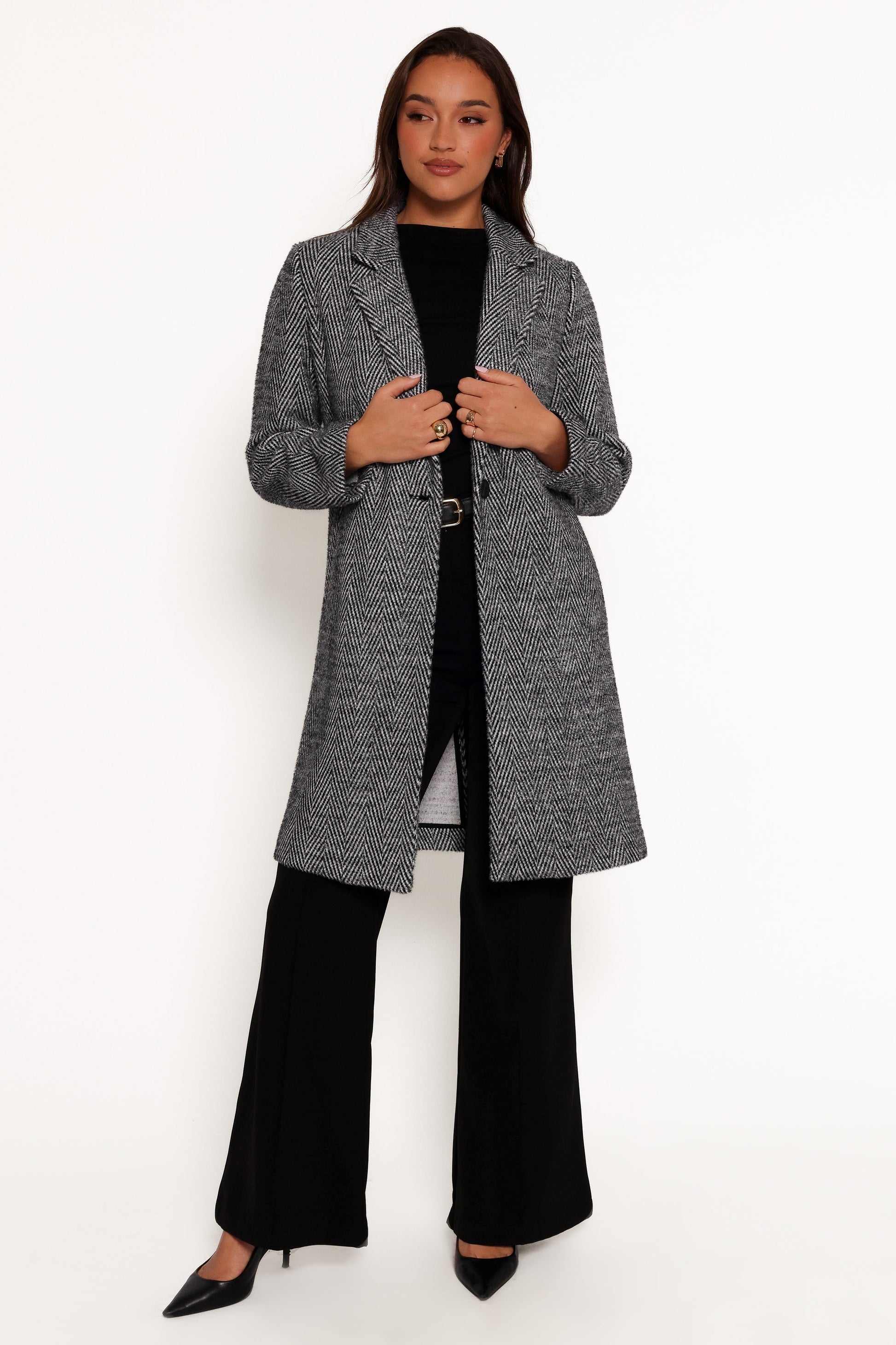 DETAILS This open front knit coatigan merges the cozy feel of a cardigan with the chic structure of a coat, making it an essential layer for transitioning seasons. Designed to command attention, the notch lapels add a touch of sophistication, while the contrast stitch detail infuses a modern twist on classic knitwear.