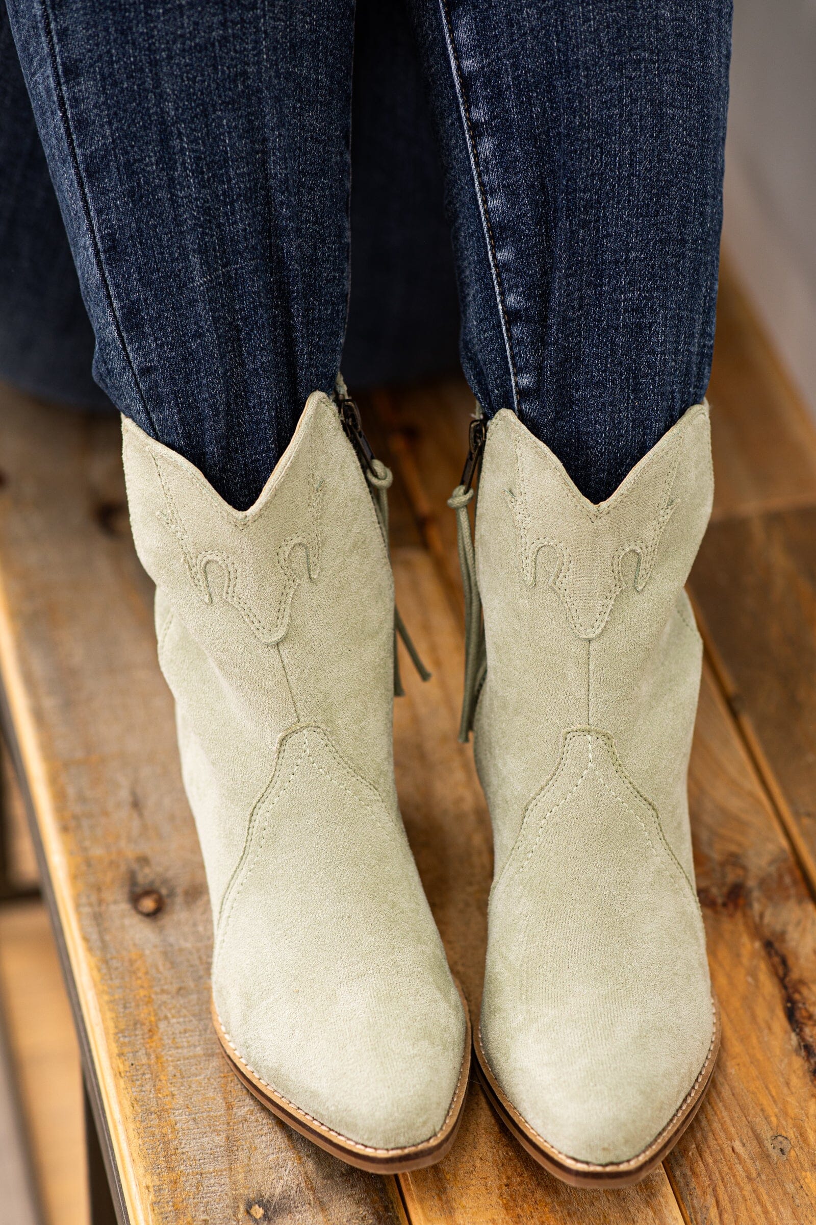 Sage Faux Suede Bootie With Western Detail