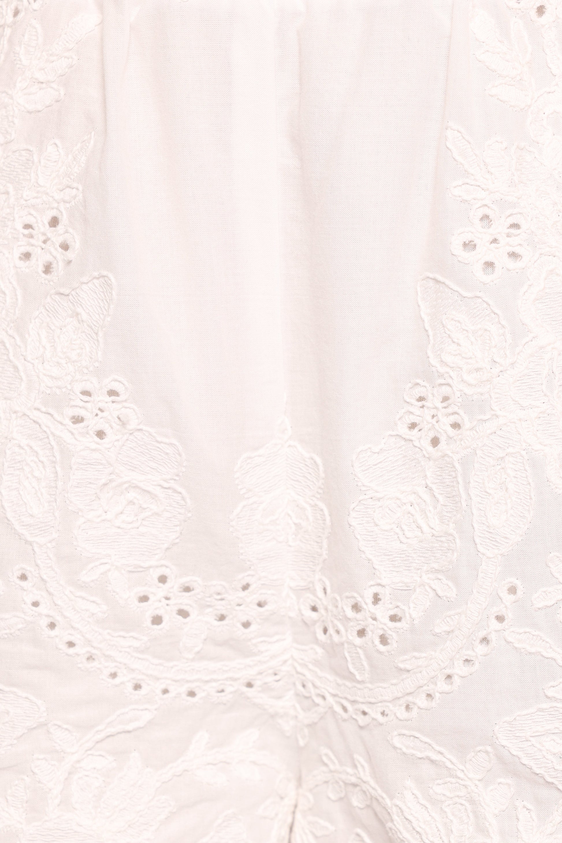 DETAILS Elevate your warm-weather style with the Tanis Embroidered Shorts in white. Designed with a flattering high-rise fit and an elasticized waistband, these shorts effortlessly combine comfort and style for your everyday adventures.