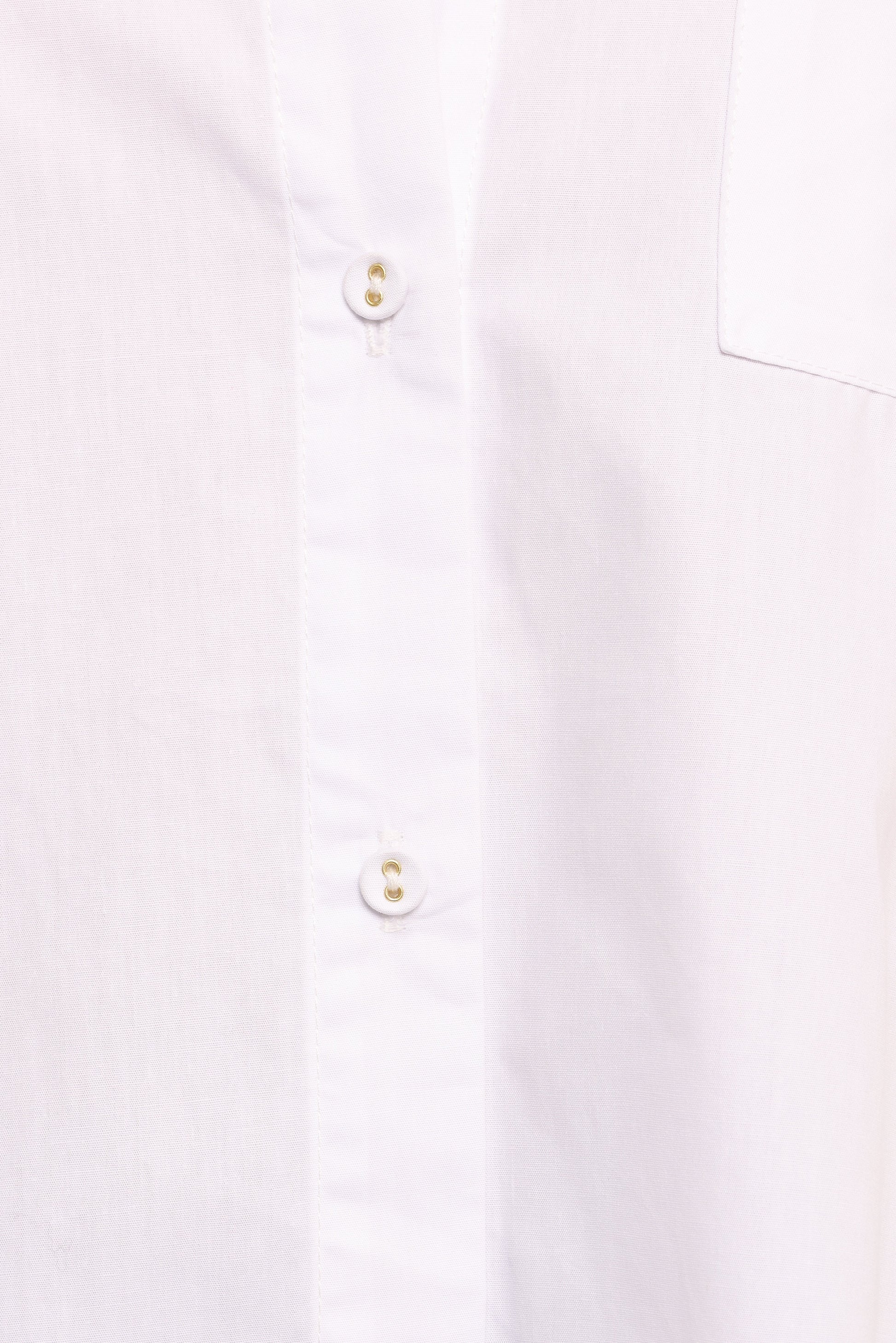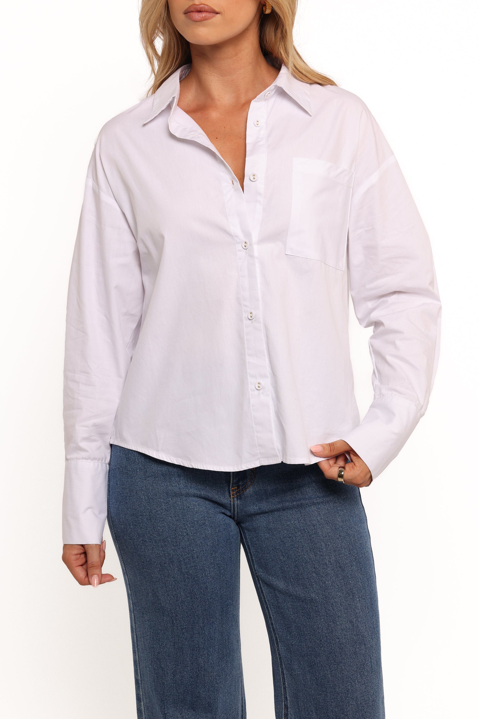 DETAILS This button-down masterpiece combines elegance with everyday comfort, featuring a chic spread collar that seamlessly transitions into a subtle yet trendy V-neckline. The long sleeves, with their button-close cuffs, offer versatility whether rolled up for a relaxed day out or buttoned down for a more polished look.