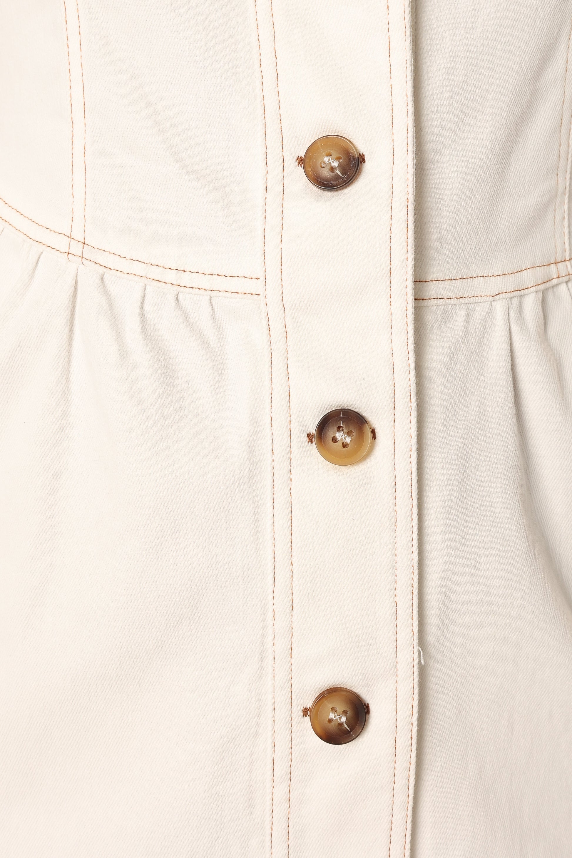 DETAILS This midi dress in denim is the perfect addition to your wardrobe! It's designed with functional button down close and a collard v neckline. Featuring an elasticised waist for extra comfort.