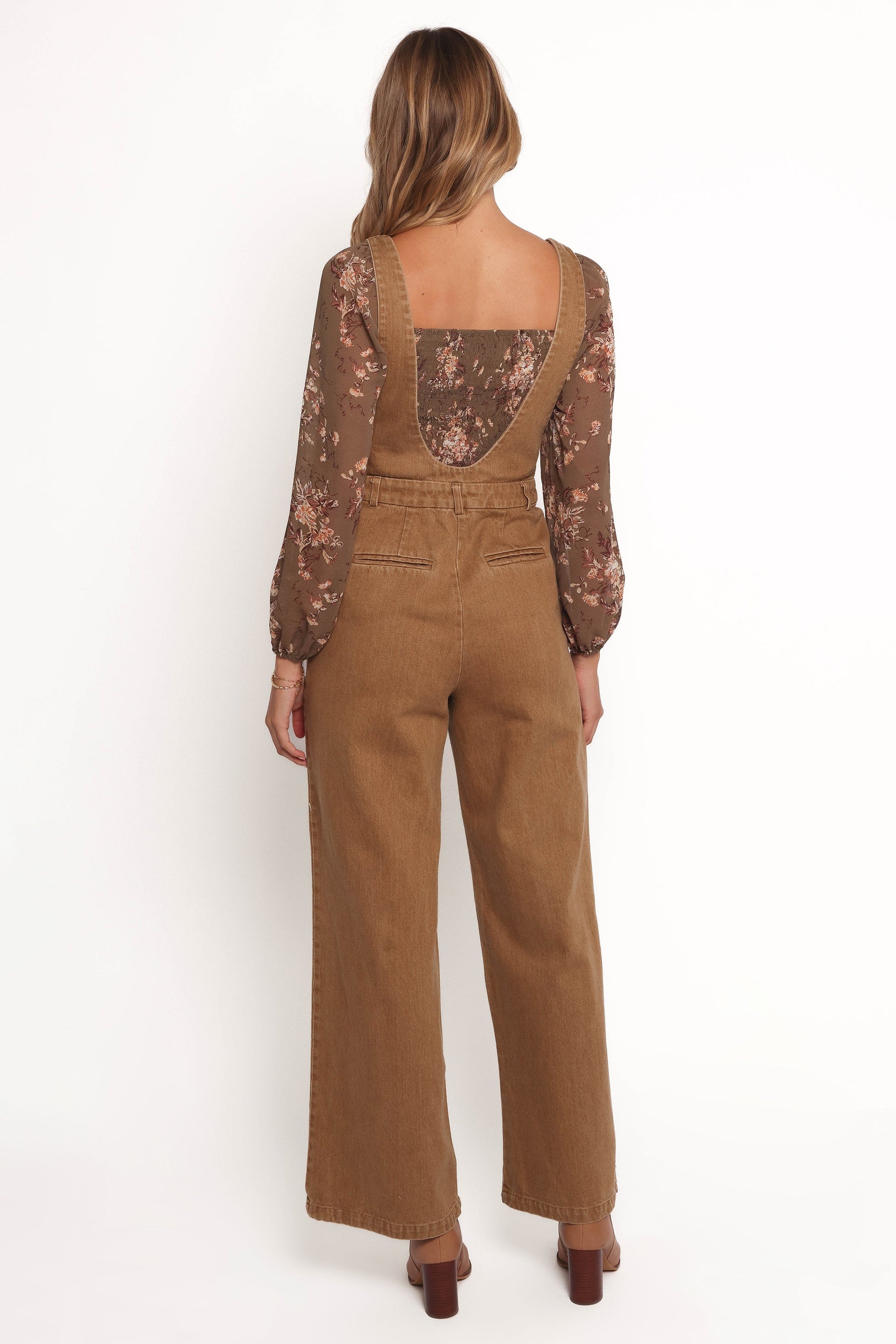 DETAILS Step into effortless style with the Vieve Jumpsuit in Brown, your new wardrobe essential for any occasion. Crafted from durable denim, this jumpsuit pairs a chic low round neckline with non-adjustable straps for a look that's both modern and easygoing.