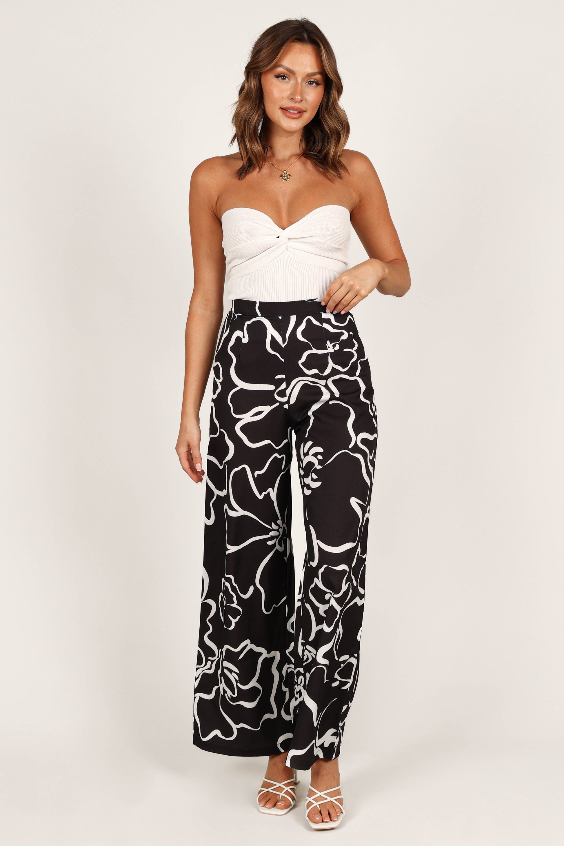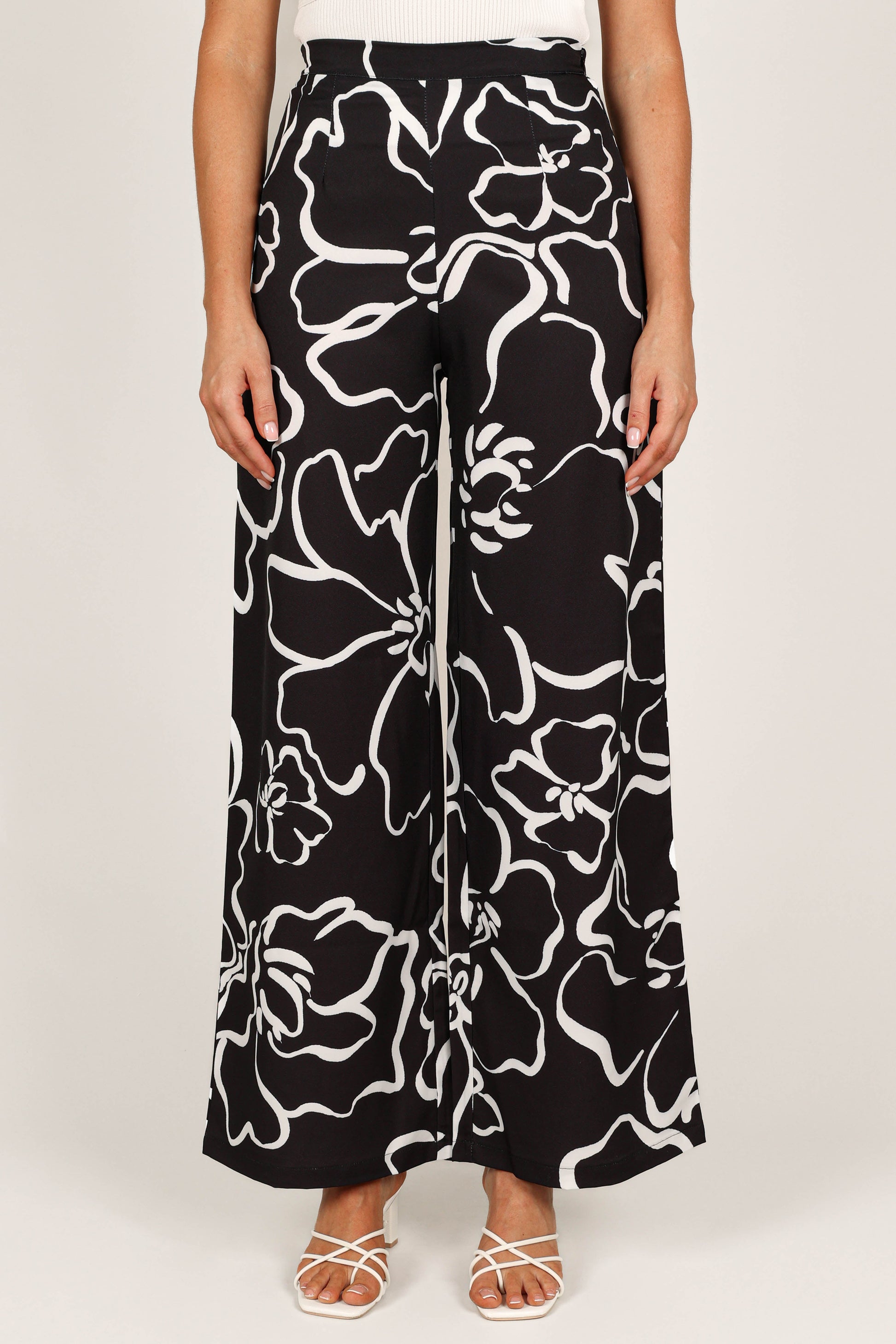 DETAILS Feel fabulous in these statement-making wide leg pants. Crafted from a lightweight material with an abstract print design, they feature an invisible side zip and hook and eye clasp for easy dressing.