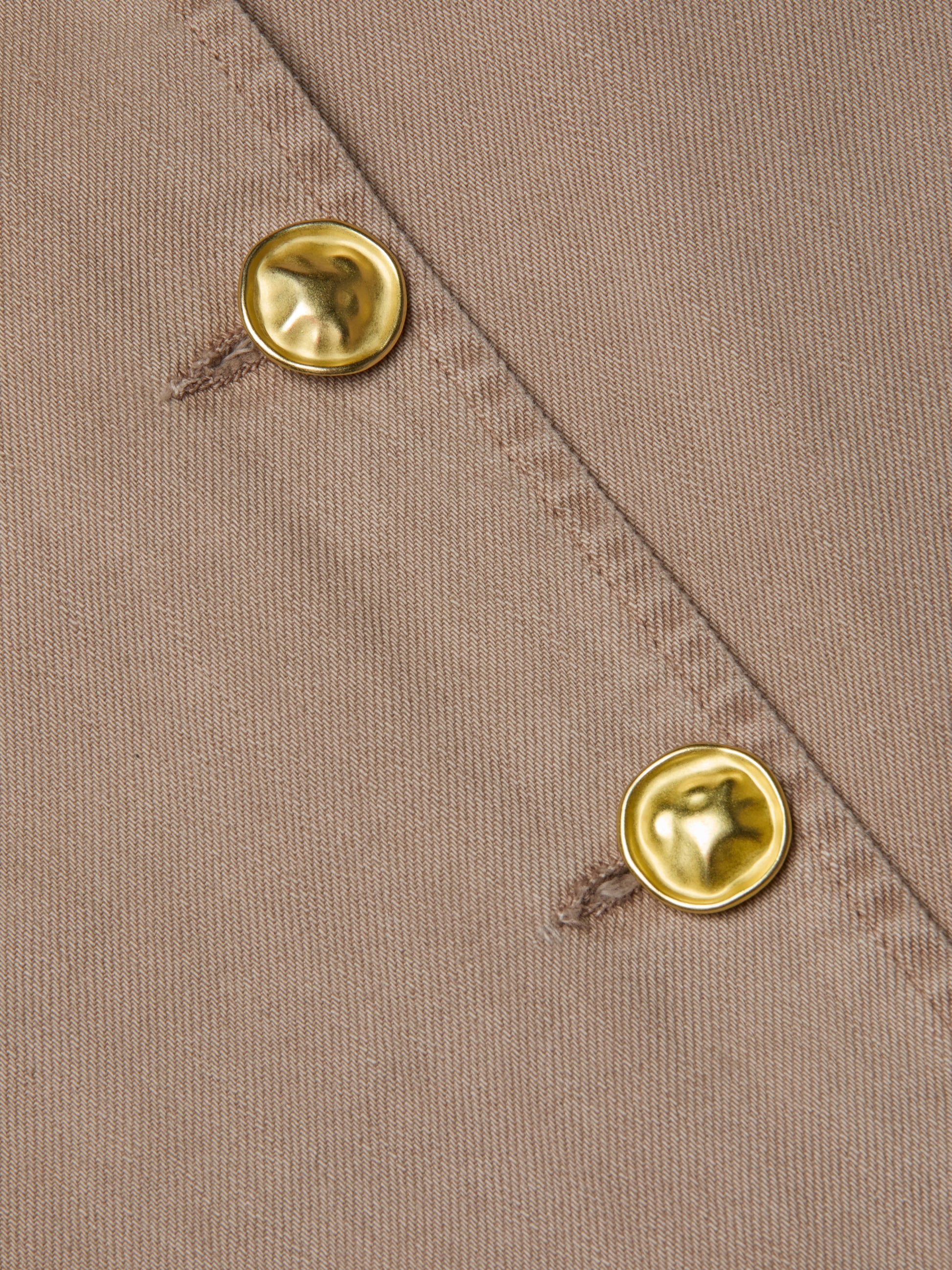 The must-have trench of the season. Introducing the Zavia, a refined denim trench constructed with an oversized collar and lapels, epaulets, and lightly padded shoulders for a strong silhouette, cinched together by a waist tie belt. Matte gold buttons elevate the clean silhouette with a luxe finish.